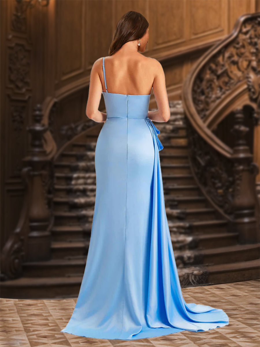 #Anouk 12010264 Trumpet/Mermaid One-Shoulder Spaghetti Strap Ruched Evening Dresses with Split Side
