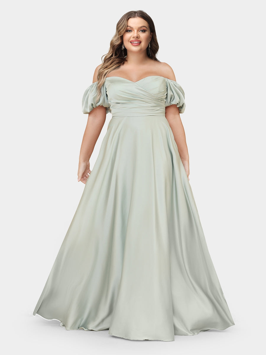 #Lysanda 99081979P A-Line/Princess Off-the-Shoulder Puff Sleeves Plus Size Bridesmaid Dresses with Ruched