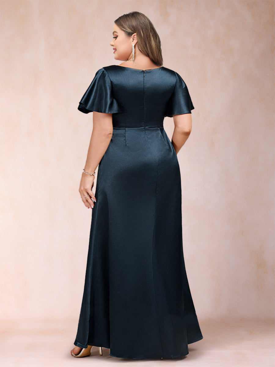 #Amabel 12010477P A-Line/Princess V-Neck Short Sleeves Plus Size Mother of the Bride Dresses with Sash