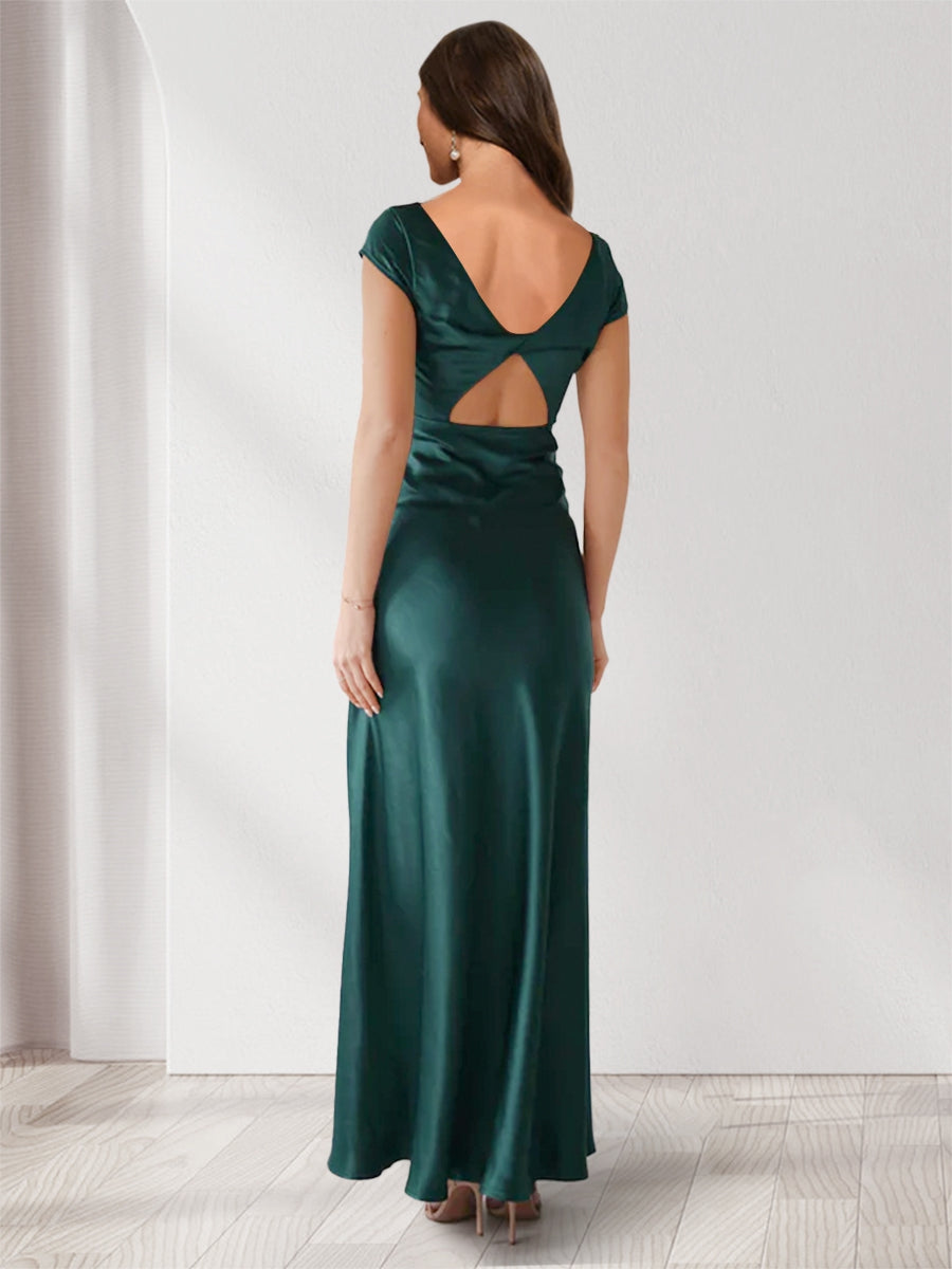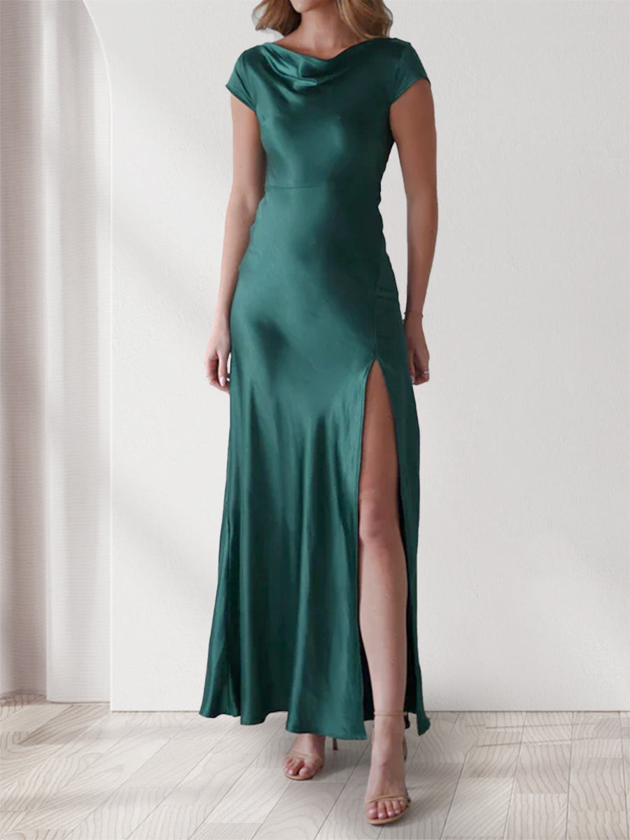 • Sheath/Column Cowl Neck Short Sleeves Ankle-Length Evening Dresses with Split Side