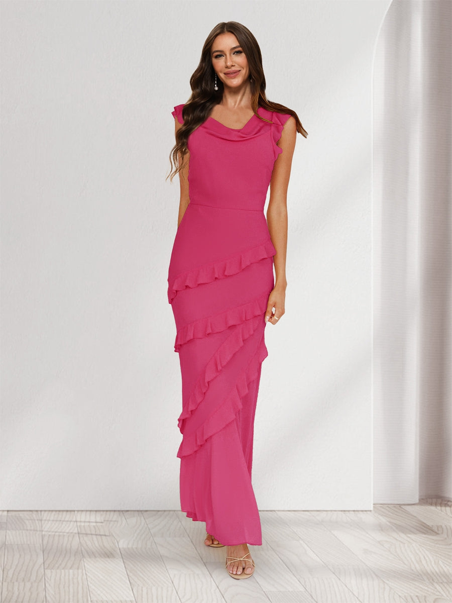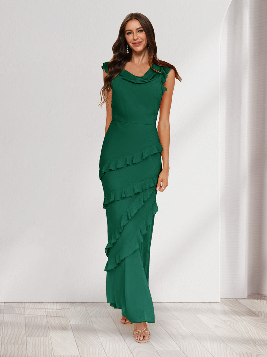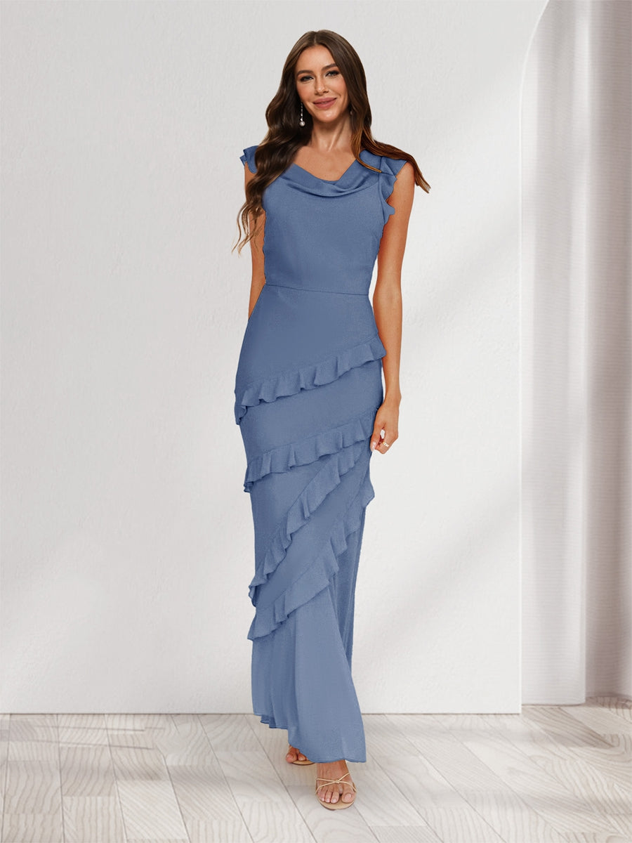 #Pitman 12011150 Sheath/Column Cowl Neck Sleeveless Ruffle Maxi Dresses Long Bridesmaid Dresses