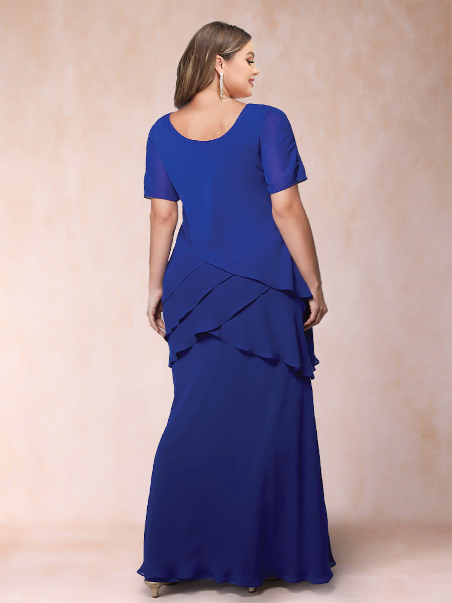 #Rhiannon 12010158P Sheath/Column Scoop Short Sleeves Chiffon Plus Size Mother of the Bride Dresses with Ruffles