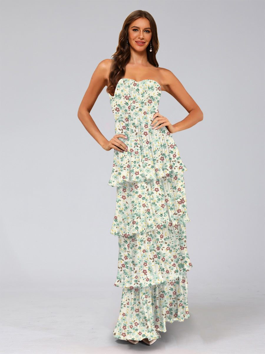 #Average 99091010 Sheath/Column Strapless Sleeveless Tiered Floral Bridesmaid Dresses
