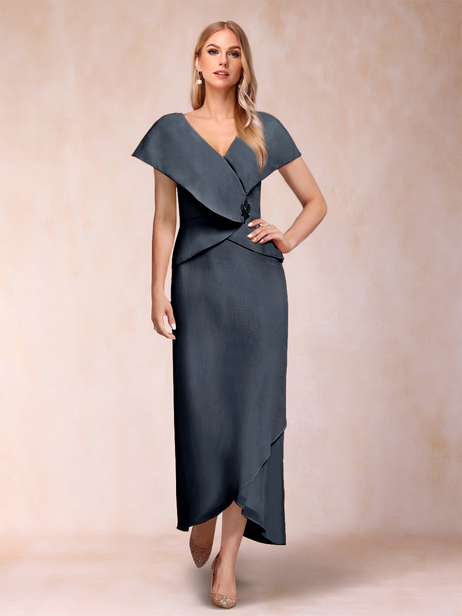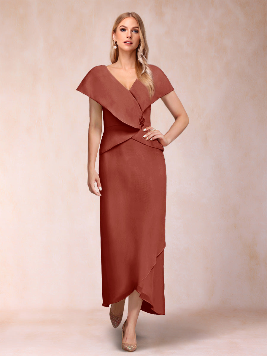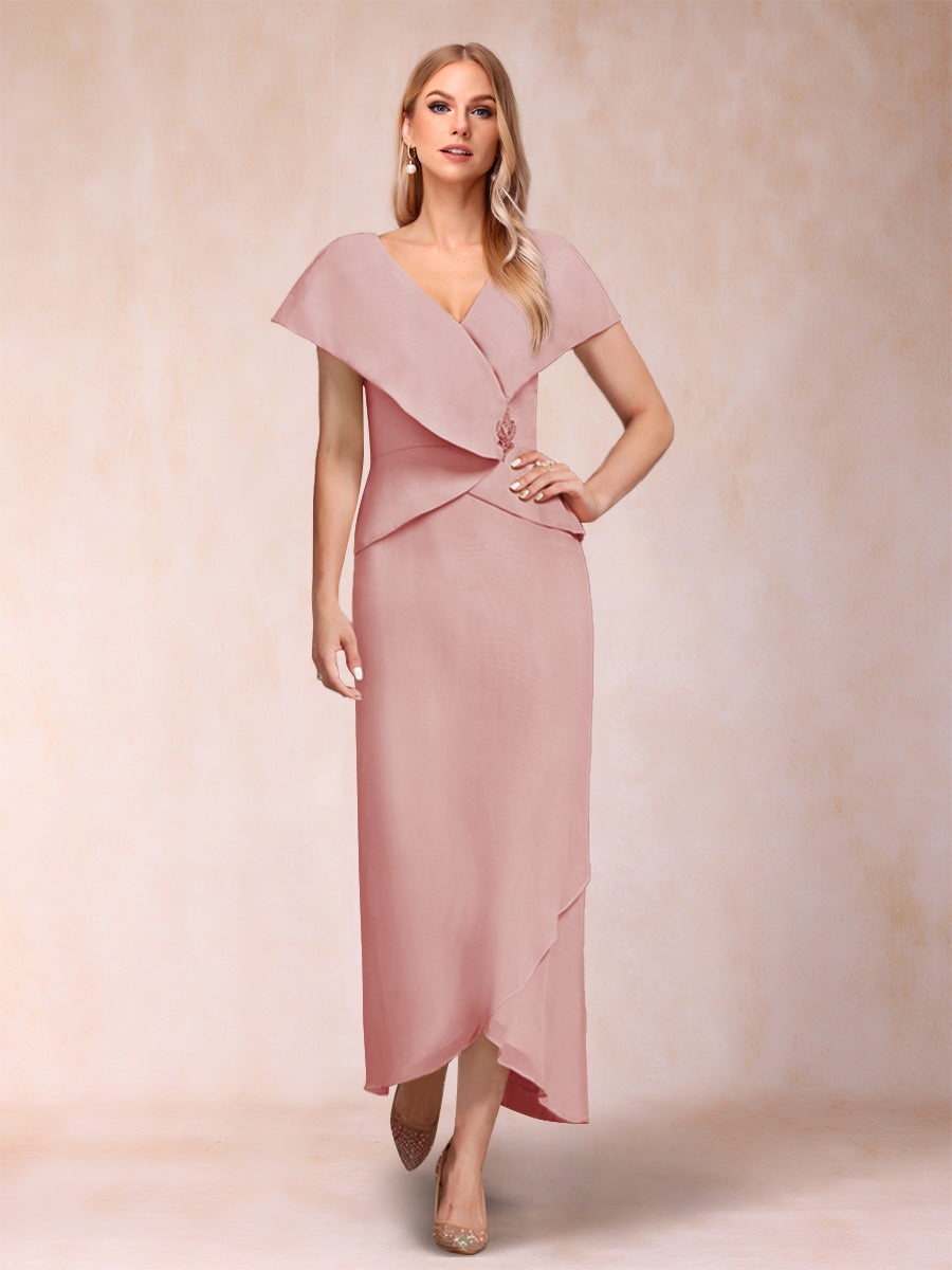 #Kamryn 12010054 Sheath/Column V-Neck Asymmetrical Chiffon Mother of the Bride Dresses With Beading Sequins