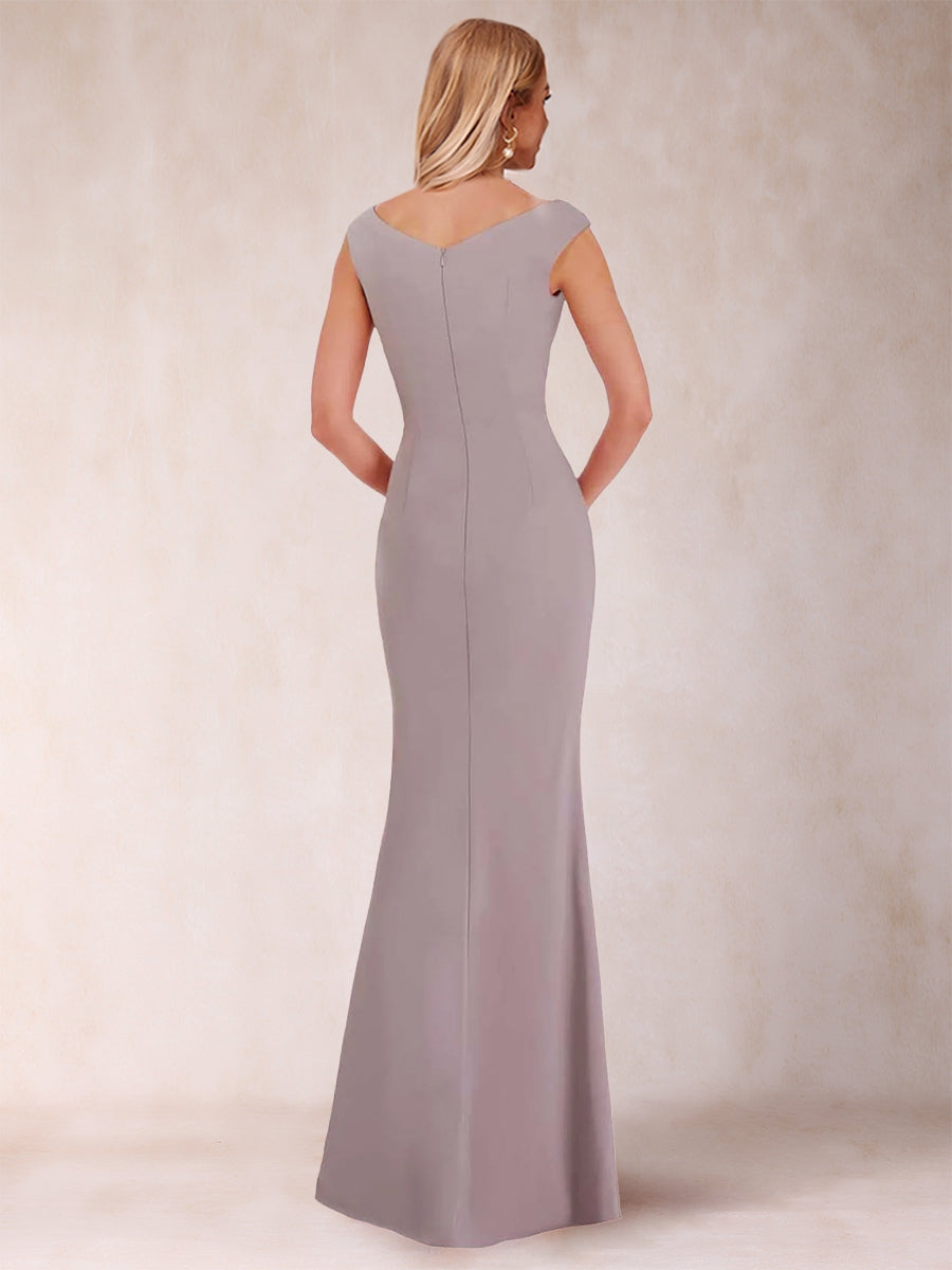 #Romina 12010198 Sheath/Column V-Neck Sleeveless Ruched Mother of the Bride Dresses with Split Side & Bow(s)
