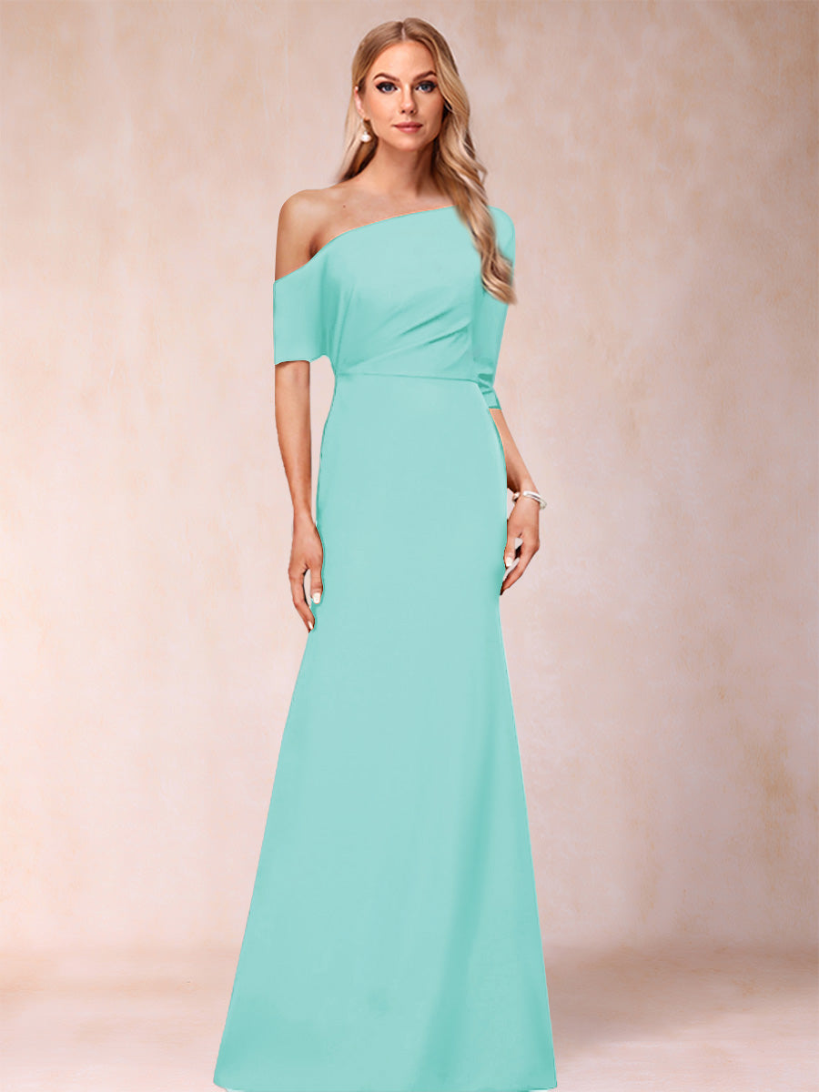 #Zuri 12010340 Trumpet/Mermaid One-Shoulder Half Sleeves Mother of the Bride Dresses with Ruched