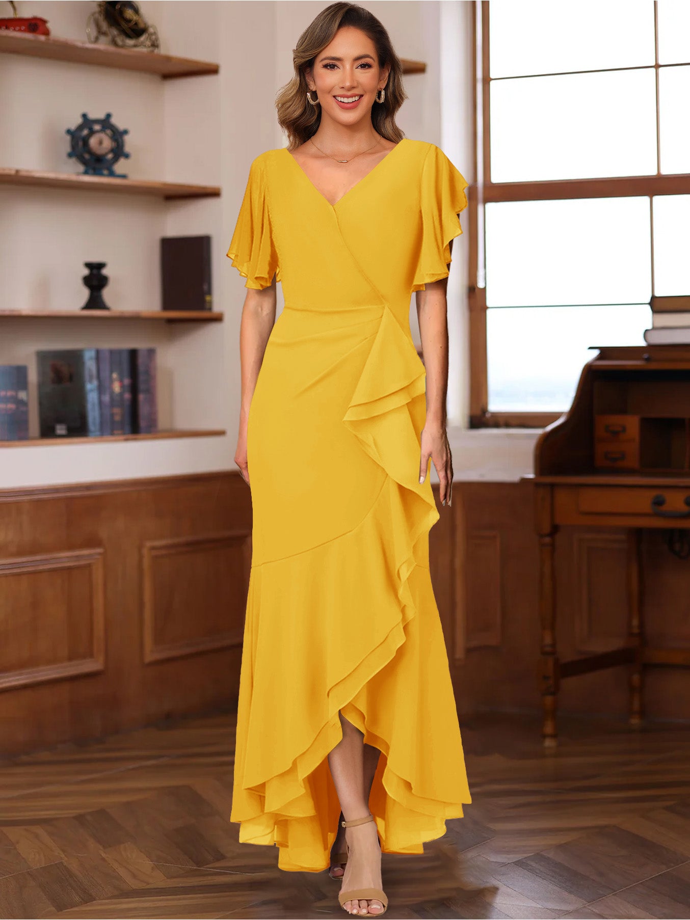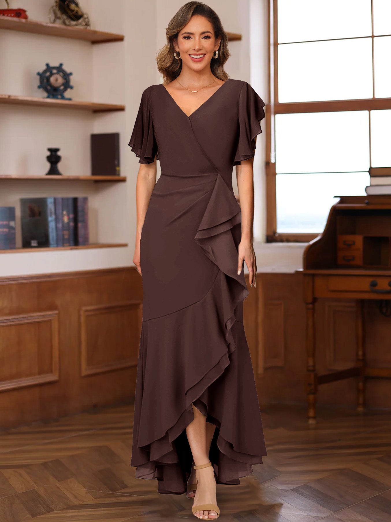 #Uriah A12011244 Trumpet/Mermaid V-Neck Short Sleeves Ruched Mother of the Bride Dresses with Ruffles