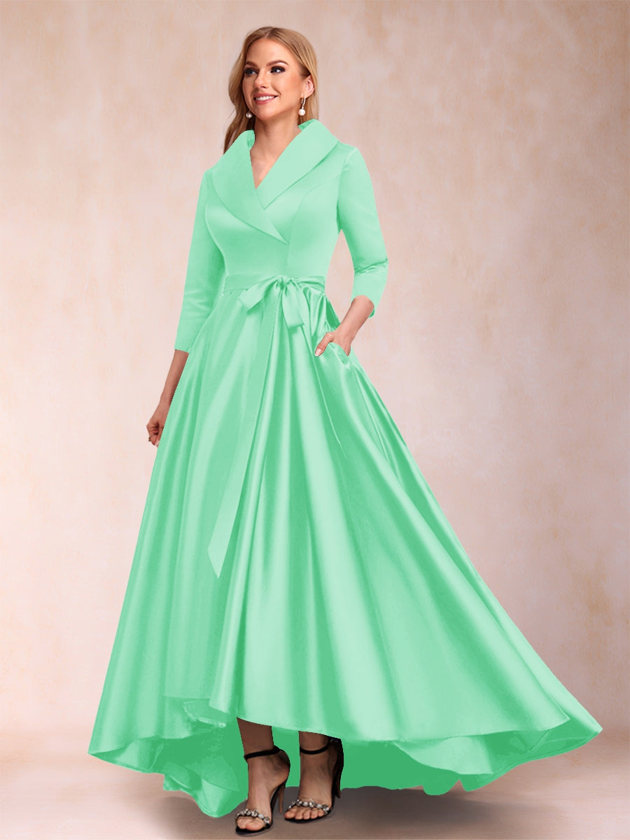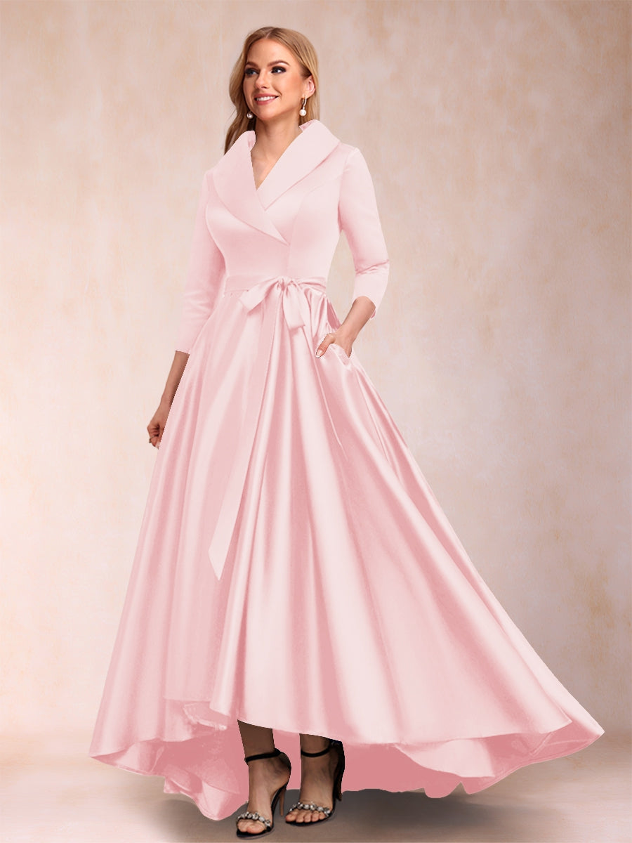 • A-Line/Princess 3/4 Sleeves Asymmetrical V-Neck Mother of the Bride Dresses