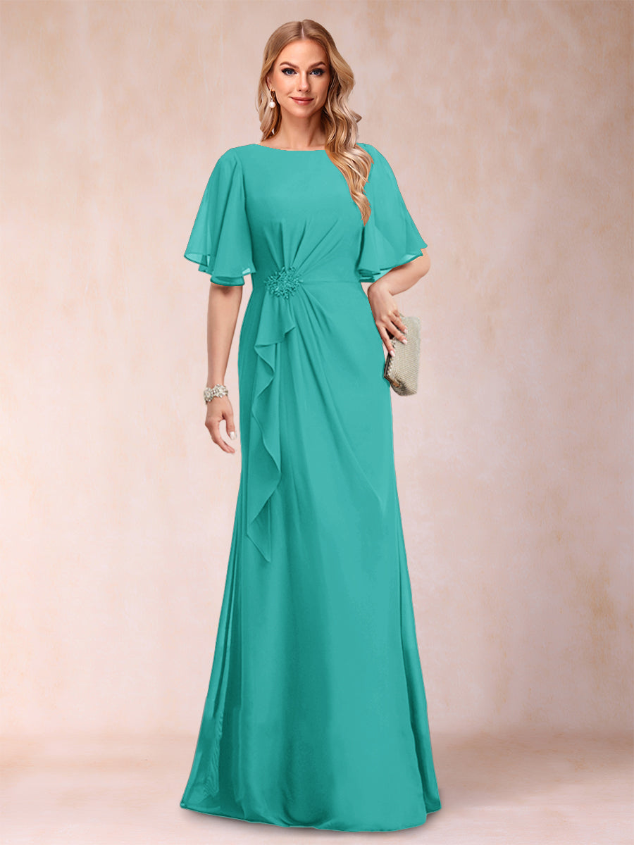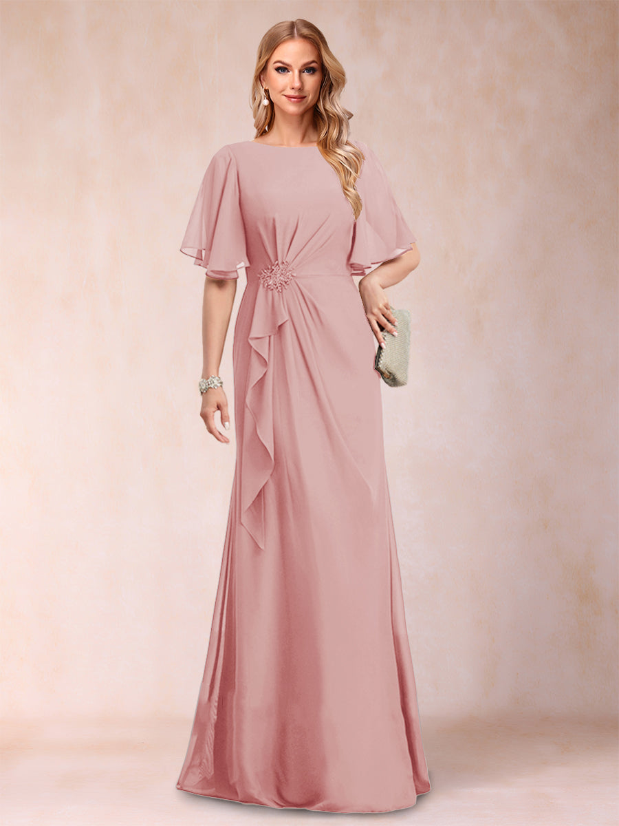 • A-Line/Princess Scoop Black Chiffon Mother of the Bride Dresses with Appliques & Ruffles
