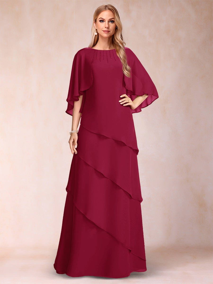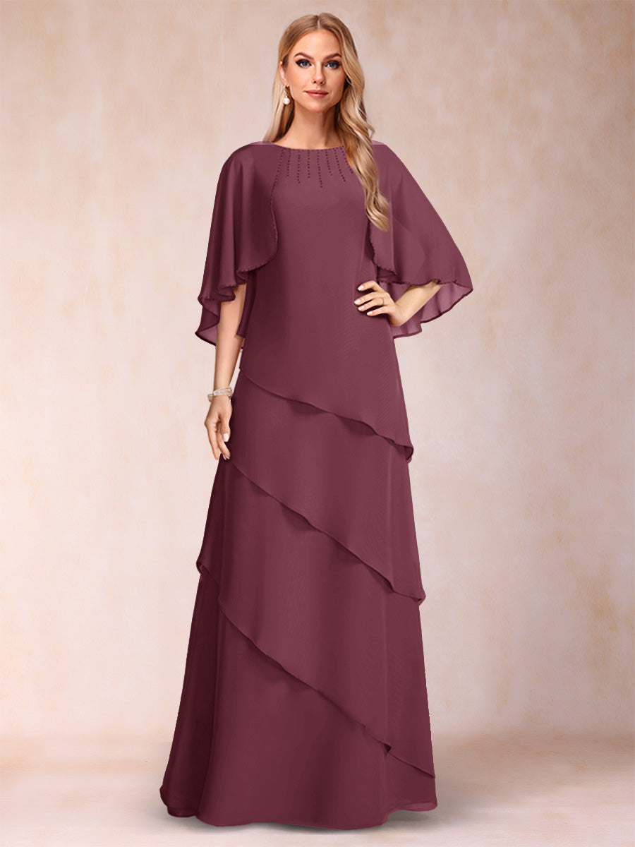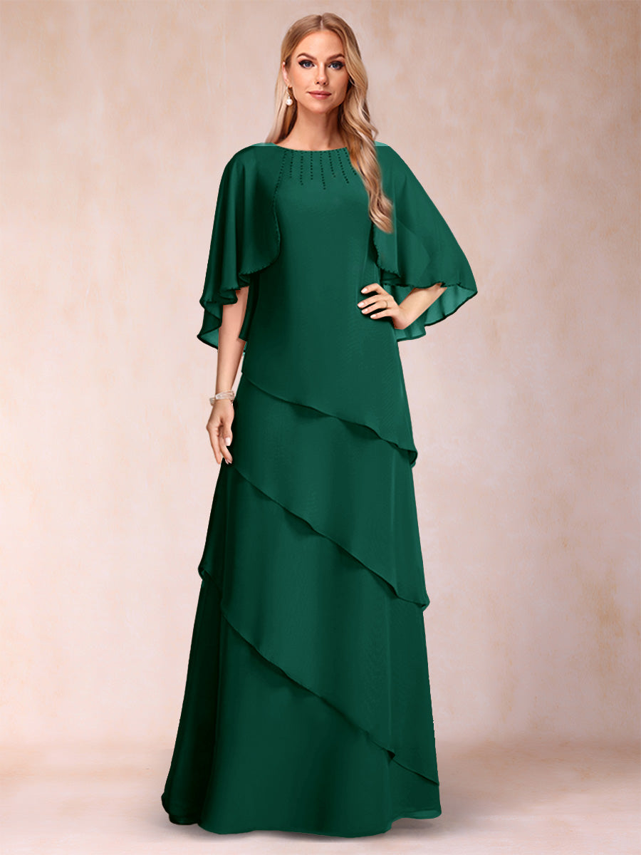 #Aileen 12010202 A-Line/Princess Scoop Half Sleeves Mother of the Bride Dresses with Ruffles & Beading