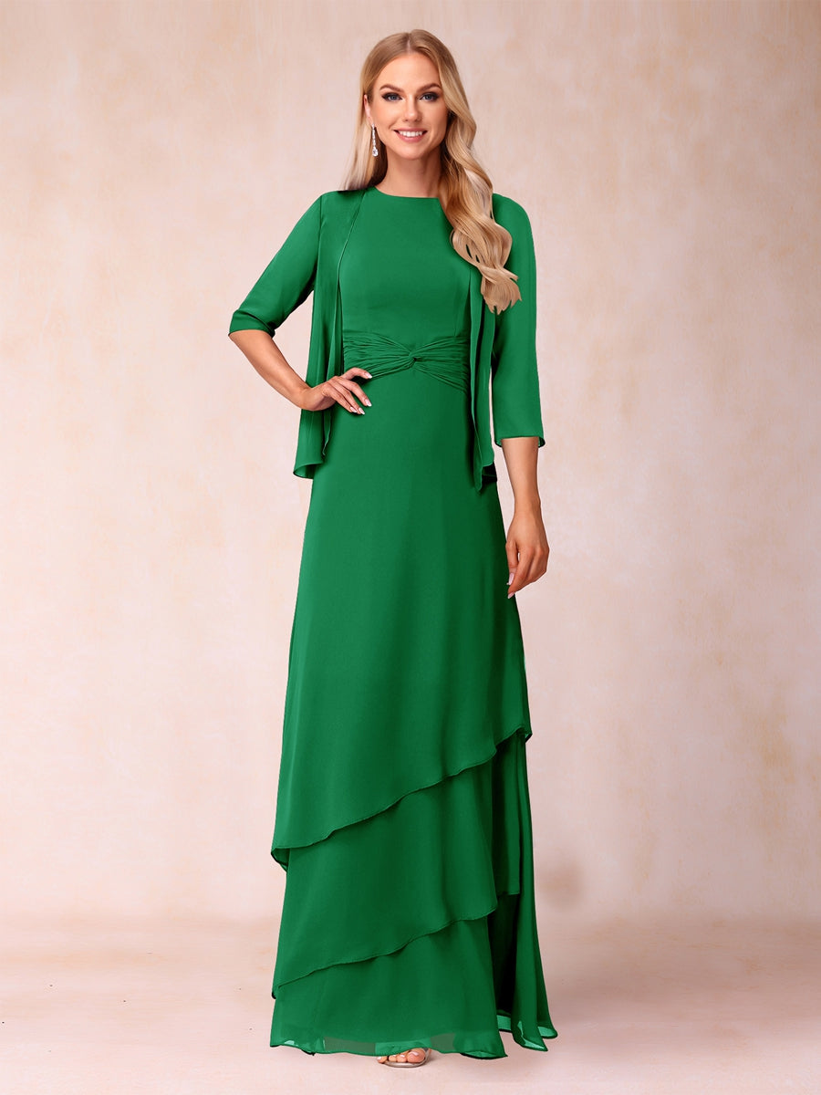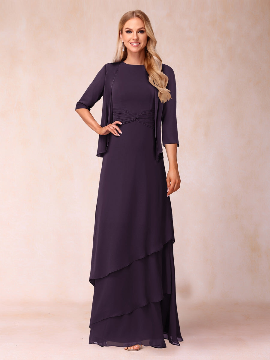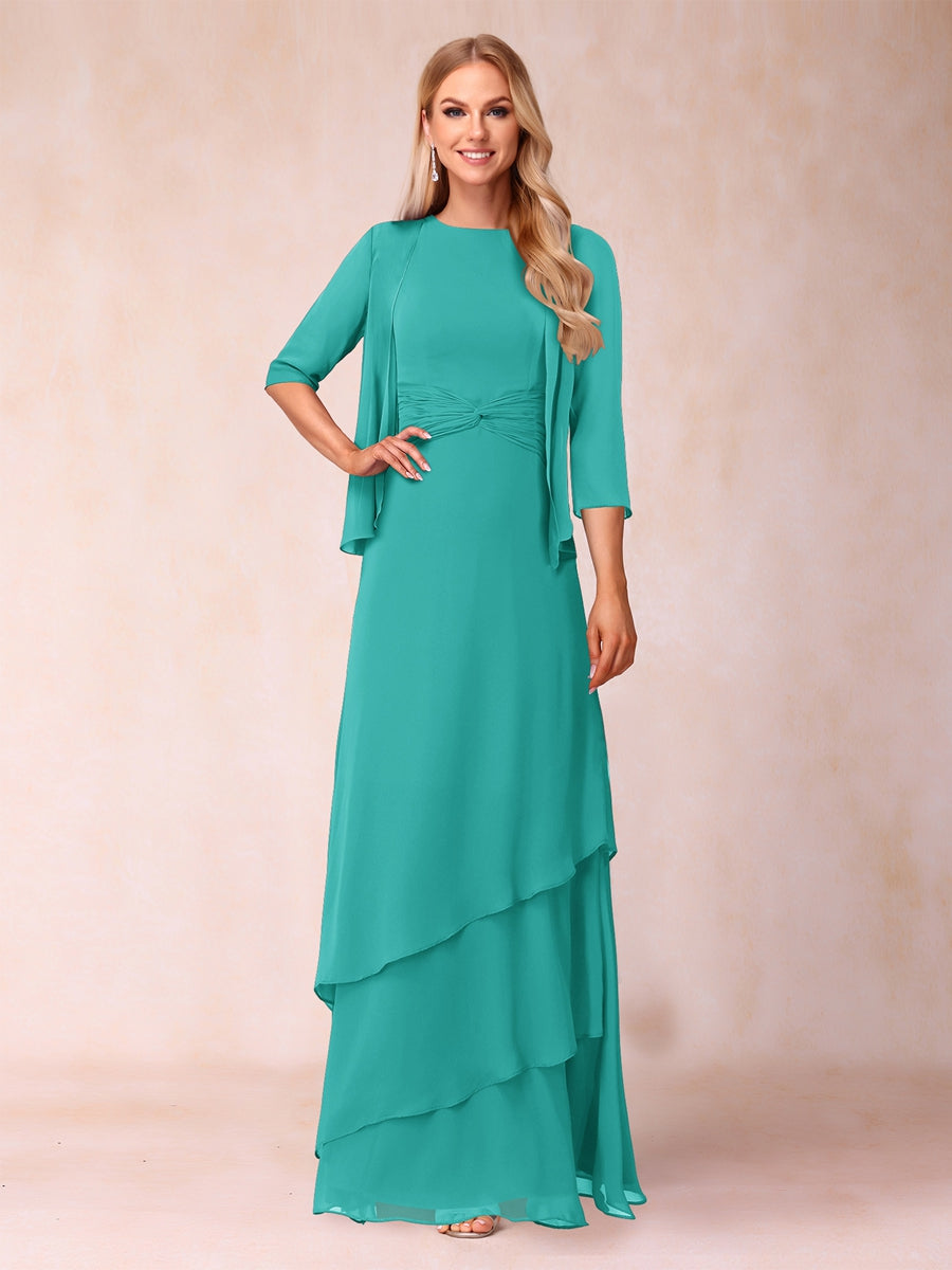 #Sevyn A2322398 A-Line/Princess Scoop Ruched Floor-Length Mother of the Bride Dresses with Ruffles & Jacket