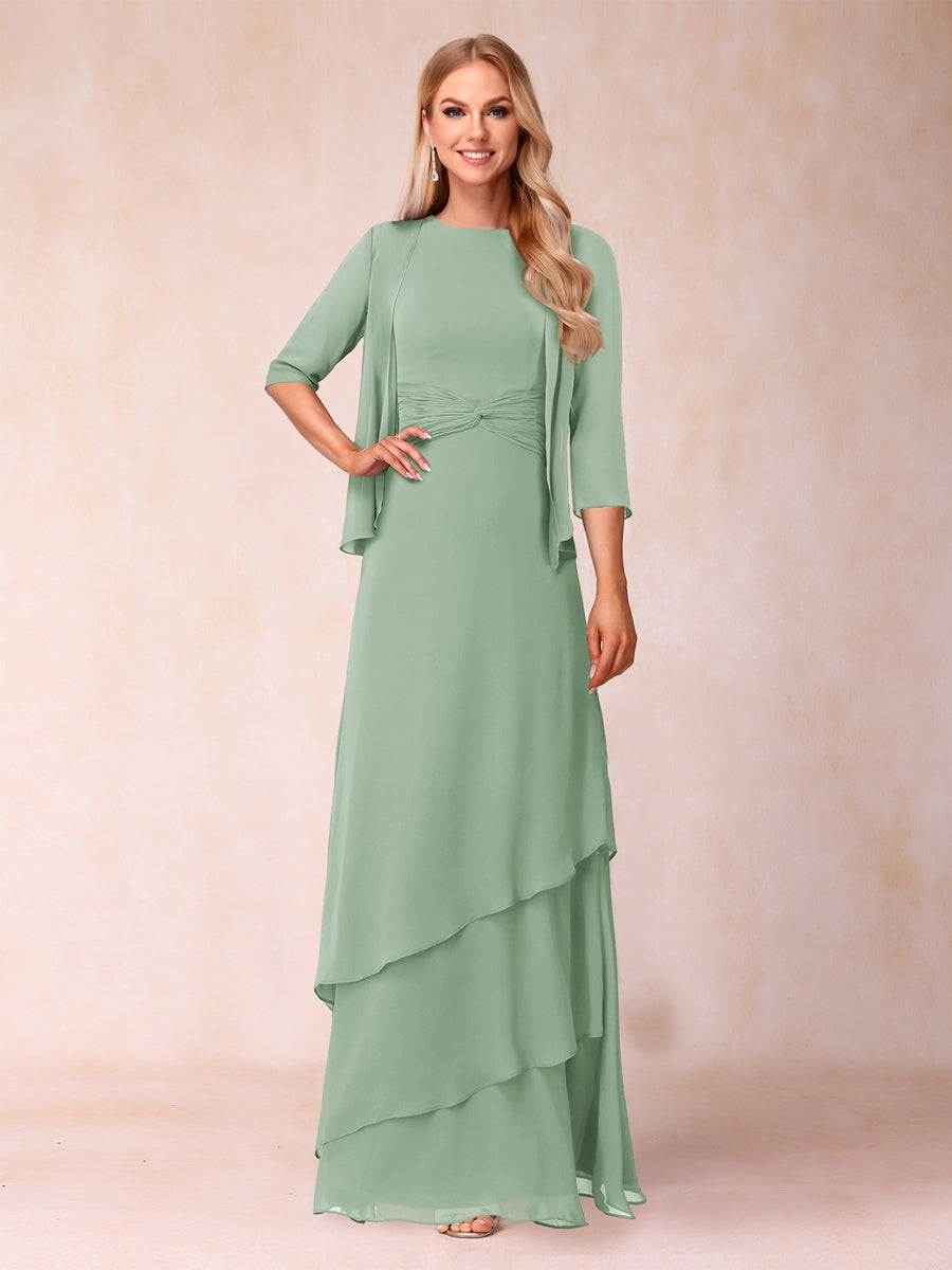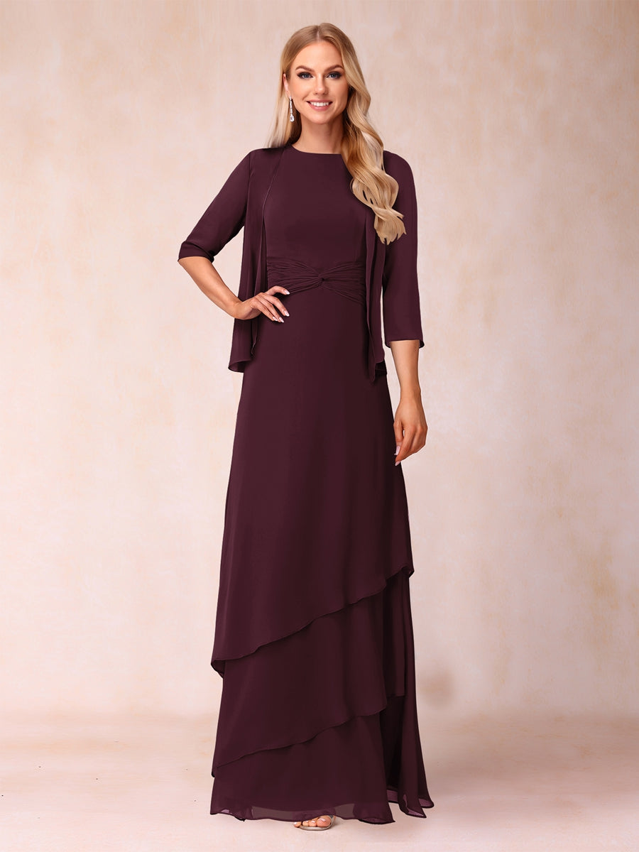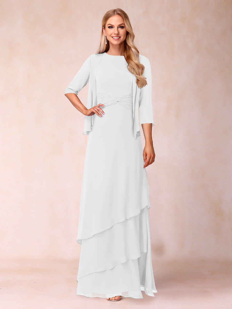 #Sevyn A2322398 A-Line/Princess Scoop Ruched Floor-Length Mother of the Bride Dresses with Ruffles & Jacket