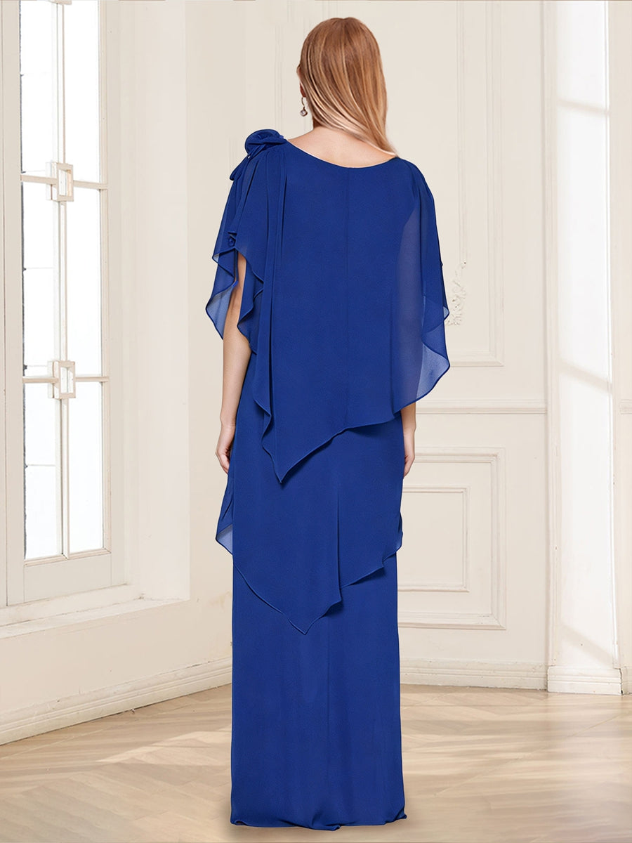 #Scripps 12011667 A-Line/Princess Scoop Short Sleeves Mother of the Bride Dresses with Ruffles & 3D Floral