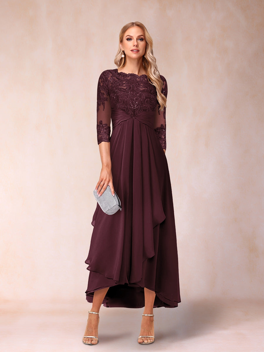• A-Line/Princess Sheer Neck 3/4 Sleeves Mother of the Bride Dresses with Beading