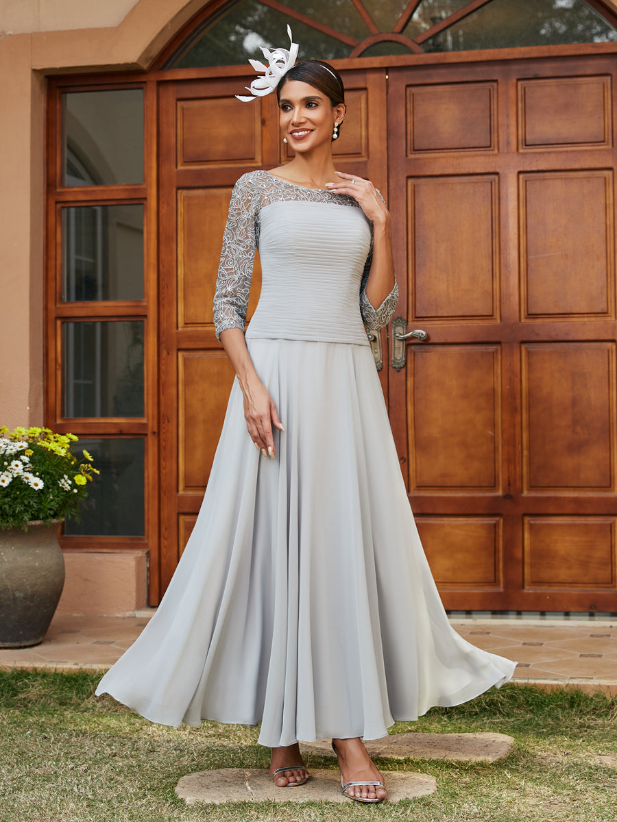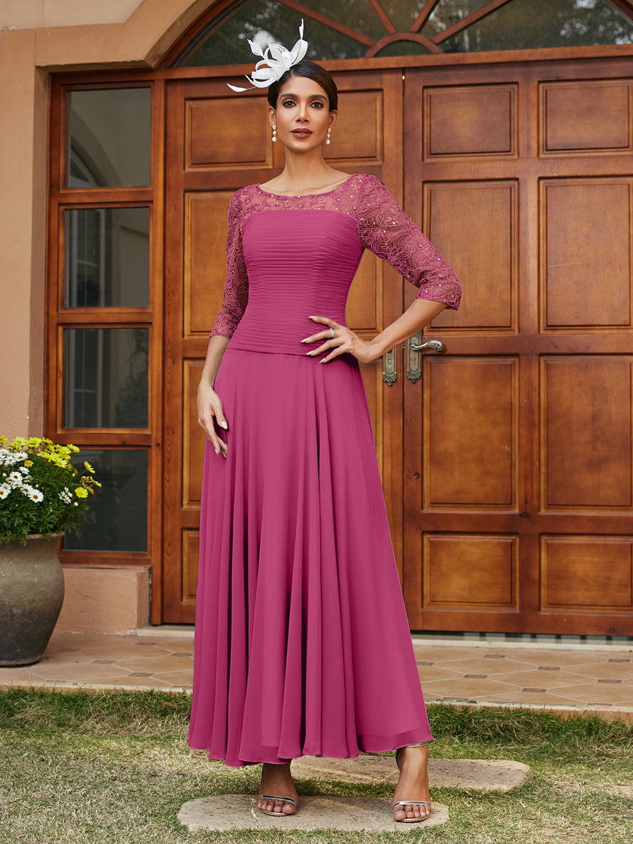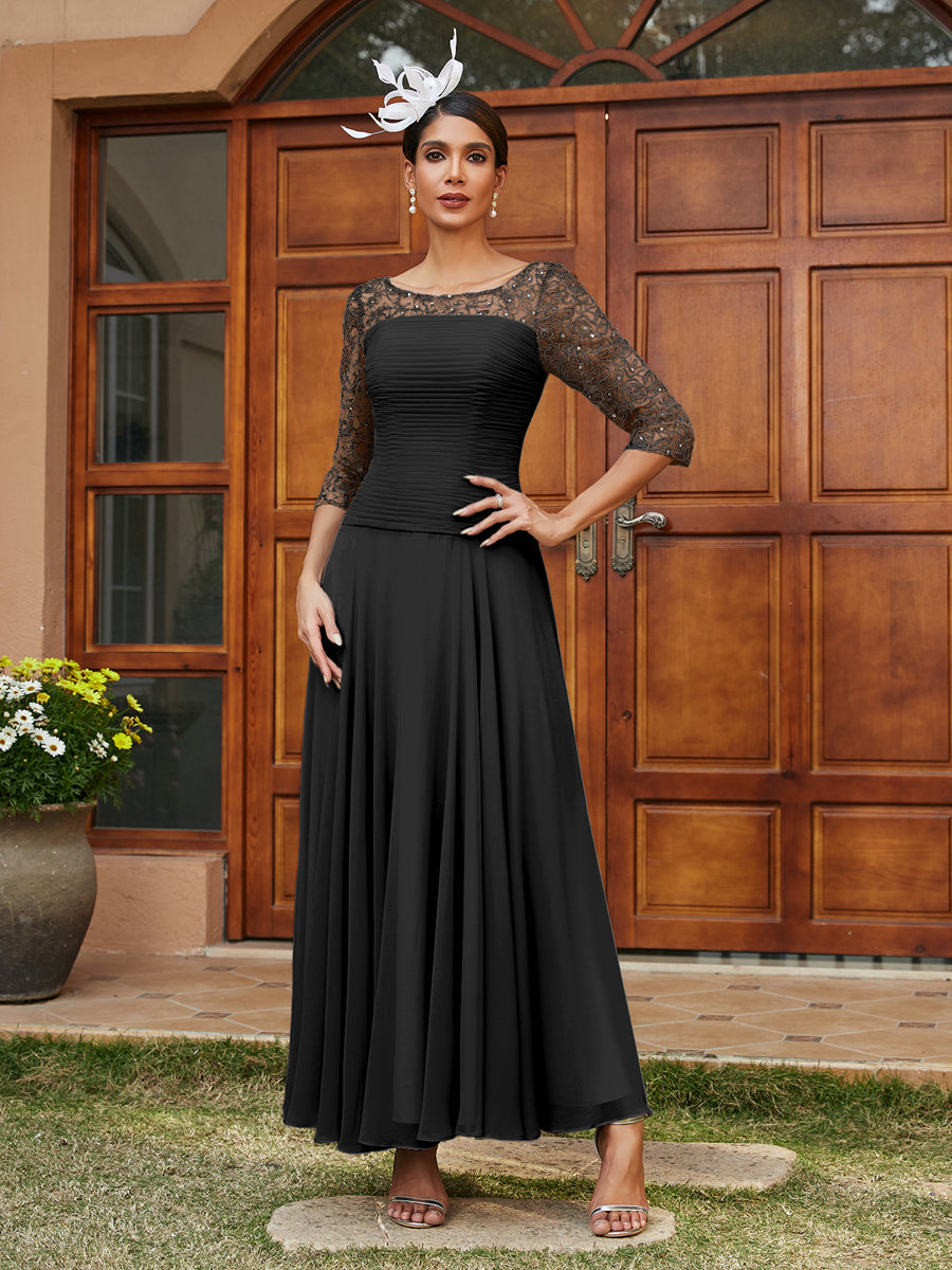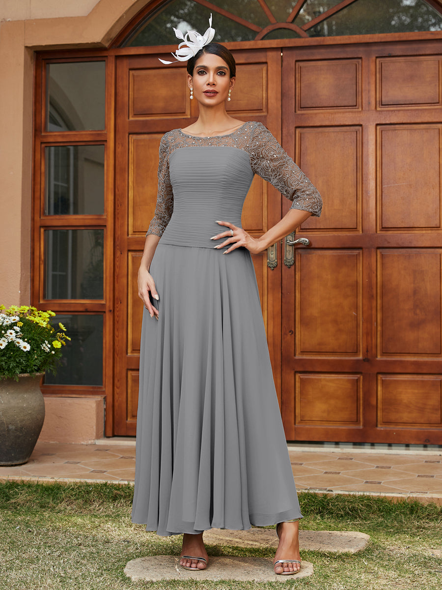 #Ivanna 22441659 A-Line/Princess Sheer Neck Half Sleeves Long Evening Dresses with Appliques