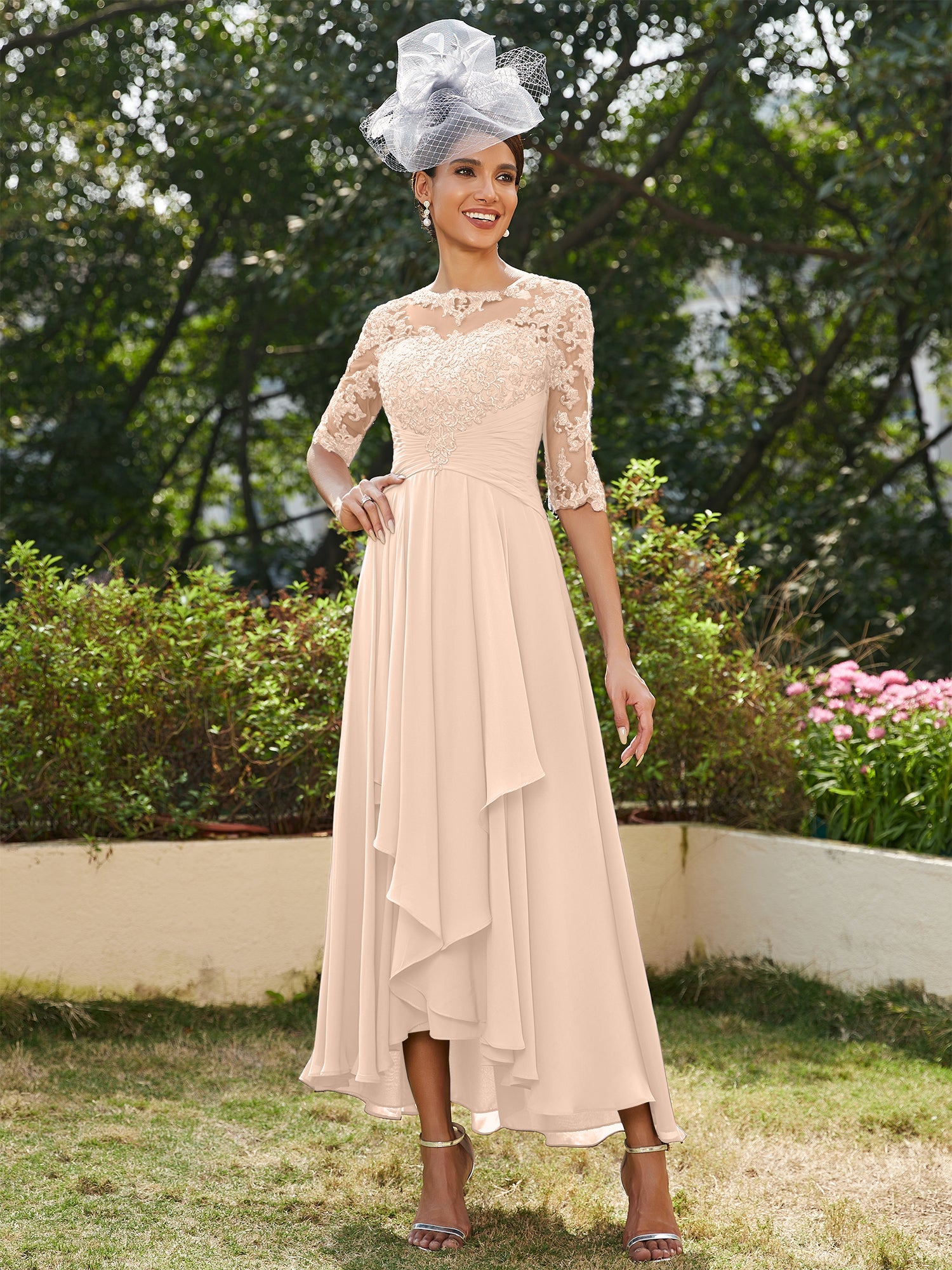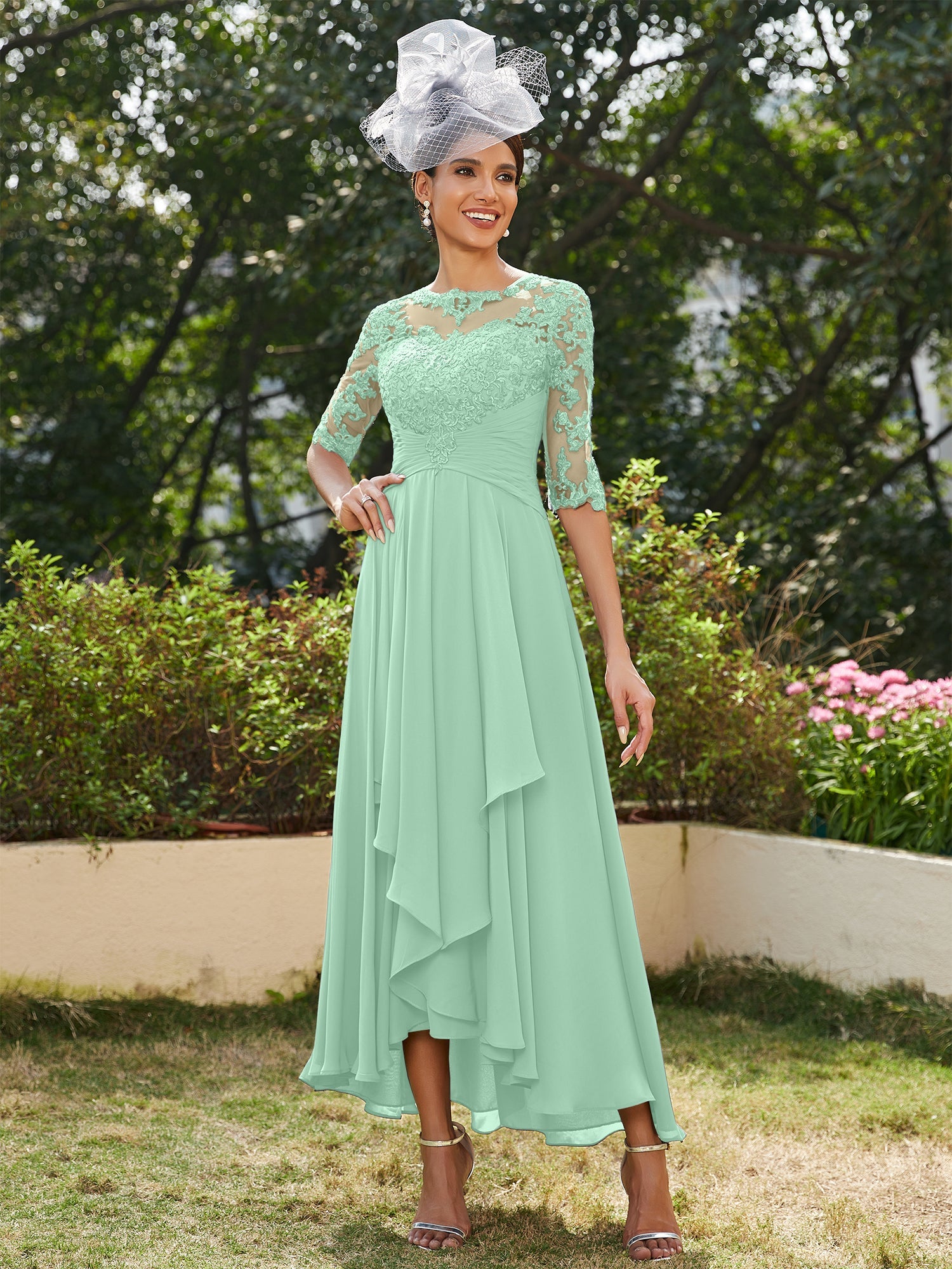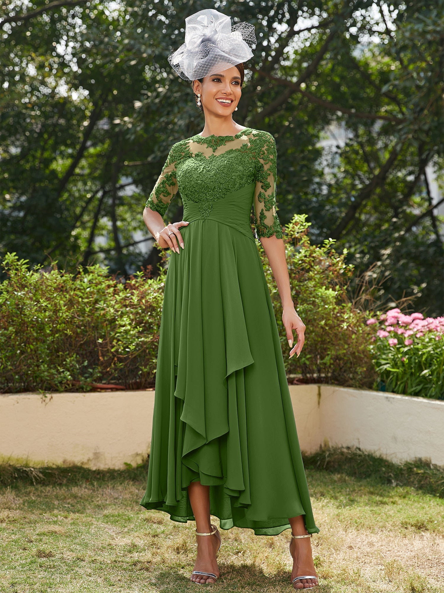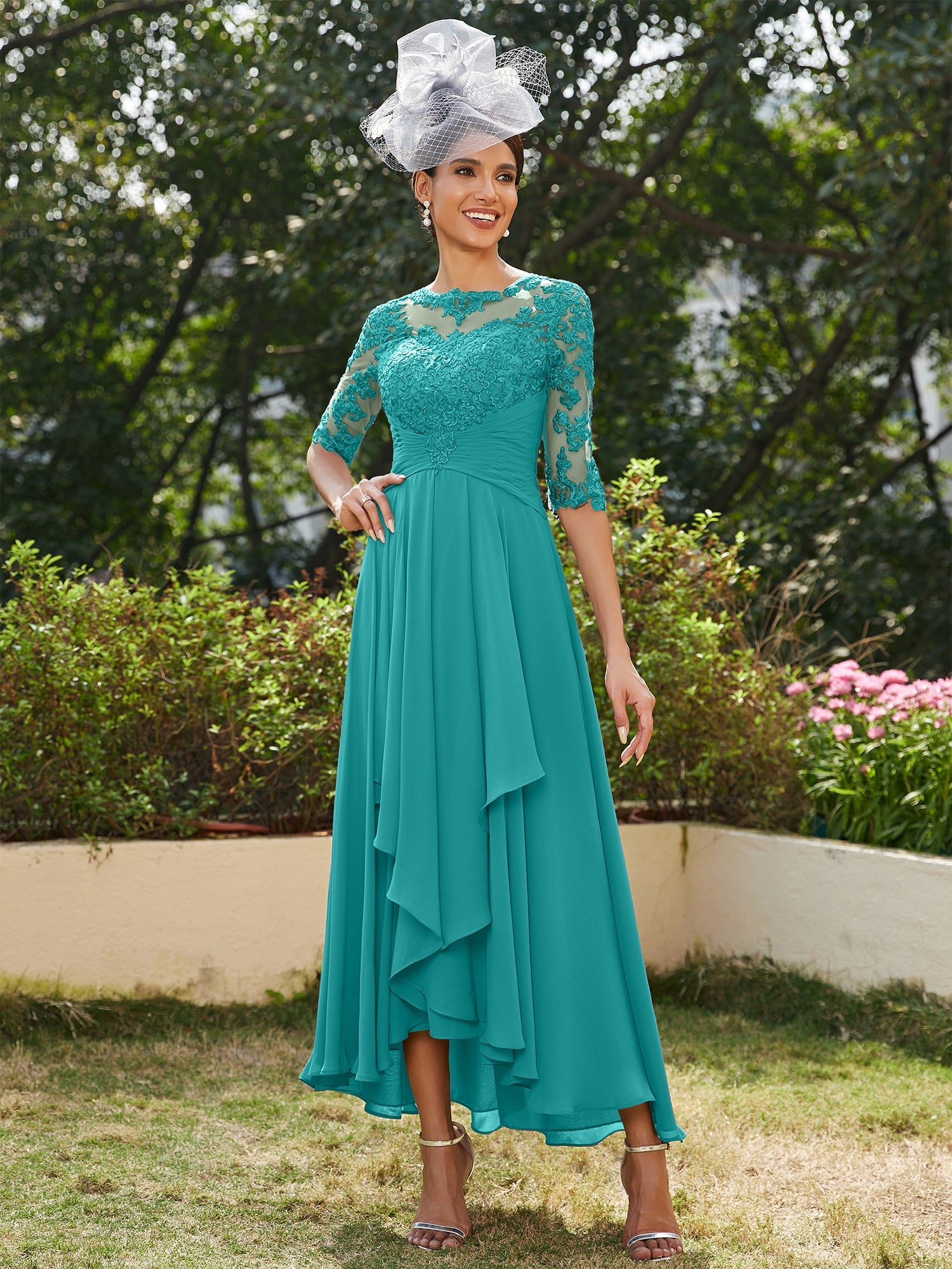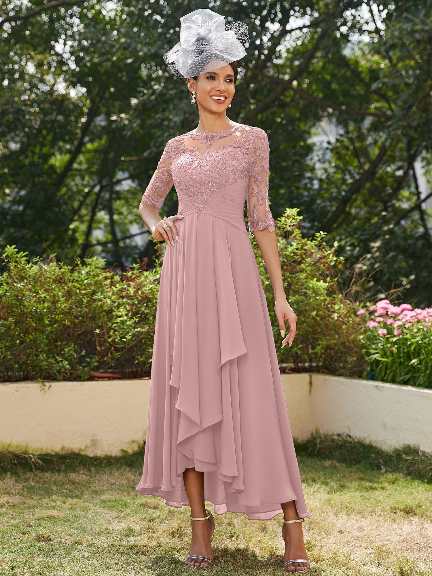 #Malaya 22441662 A-Line/Princess Sheer Neck Half Sleeves Long Evening Dresses with Appliques