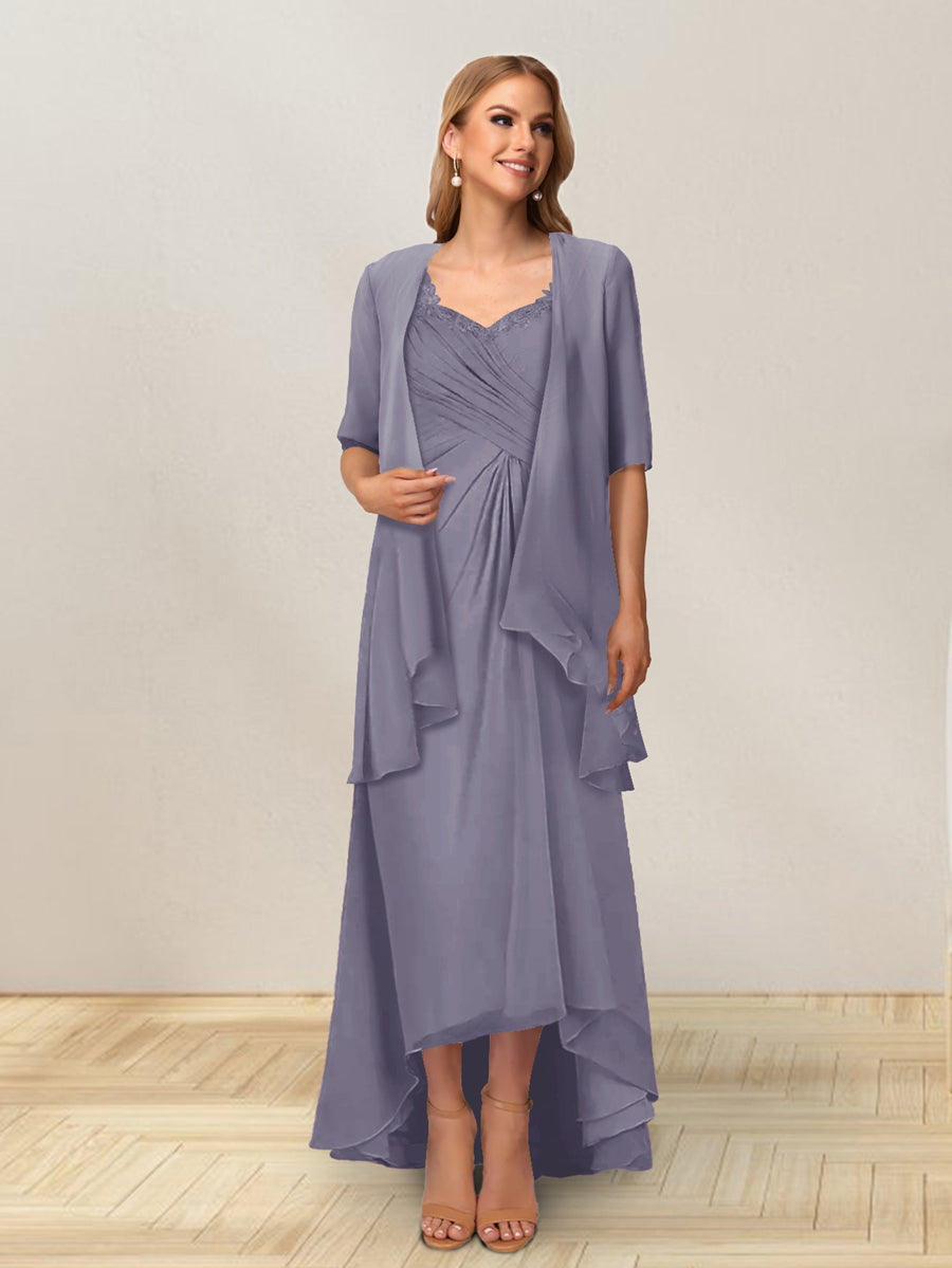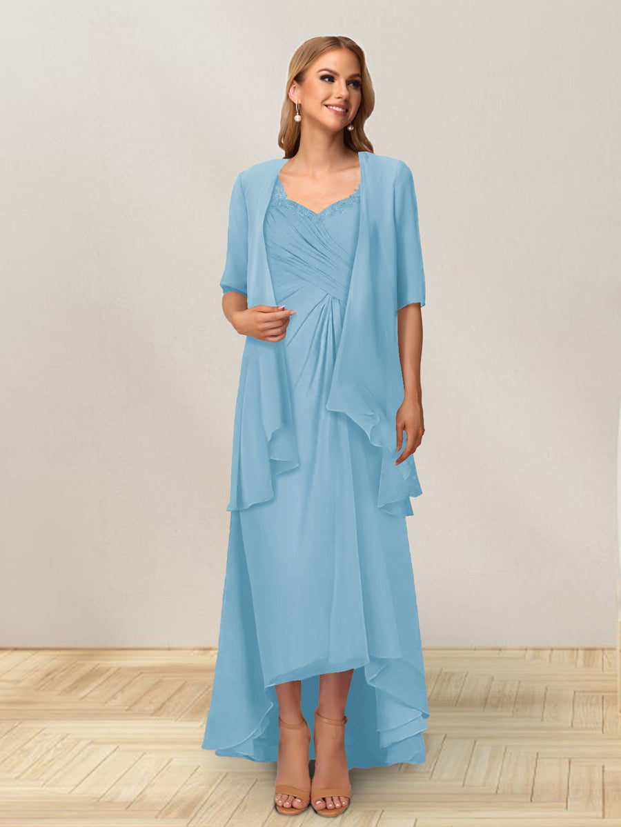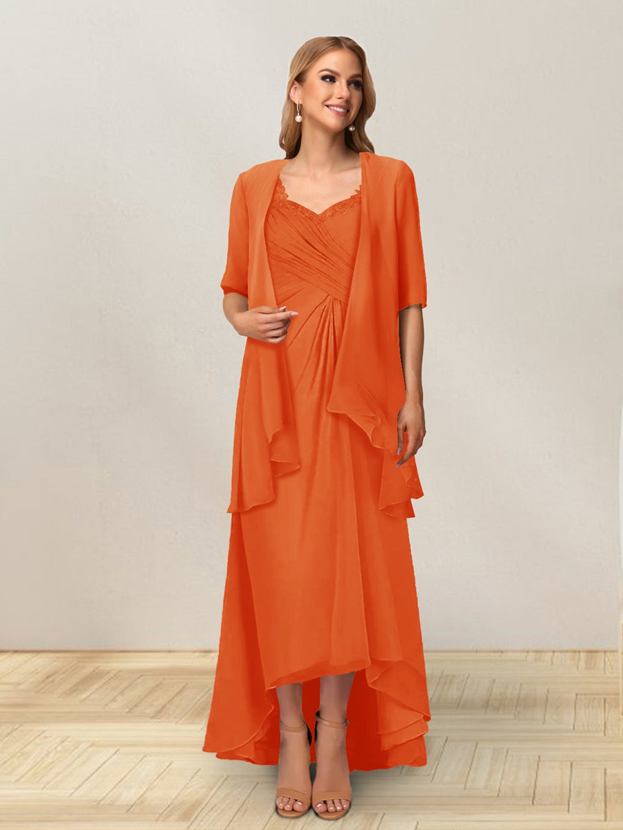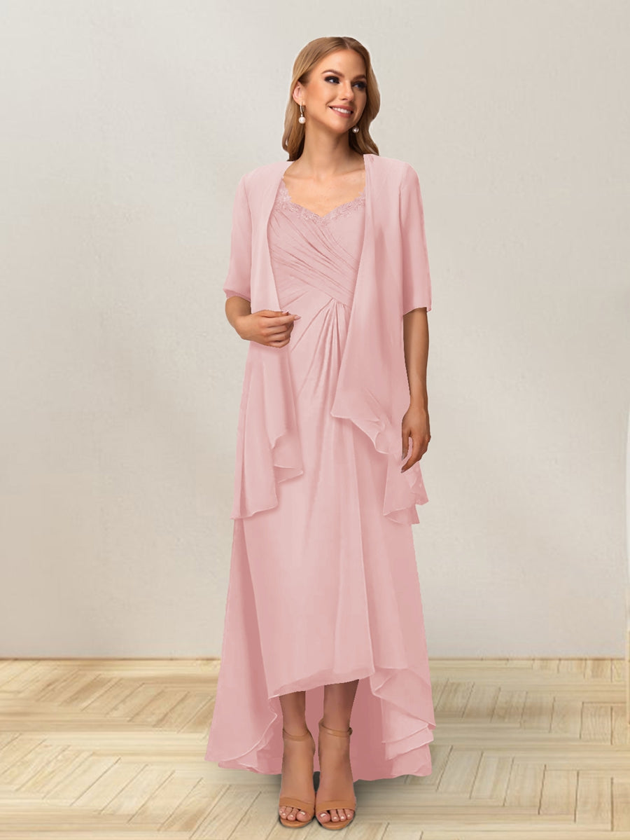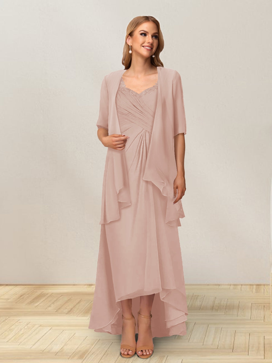 • A-Line/Princess Sleeveless Long Formal Evening Dresses With Ruffles & Jacket