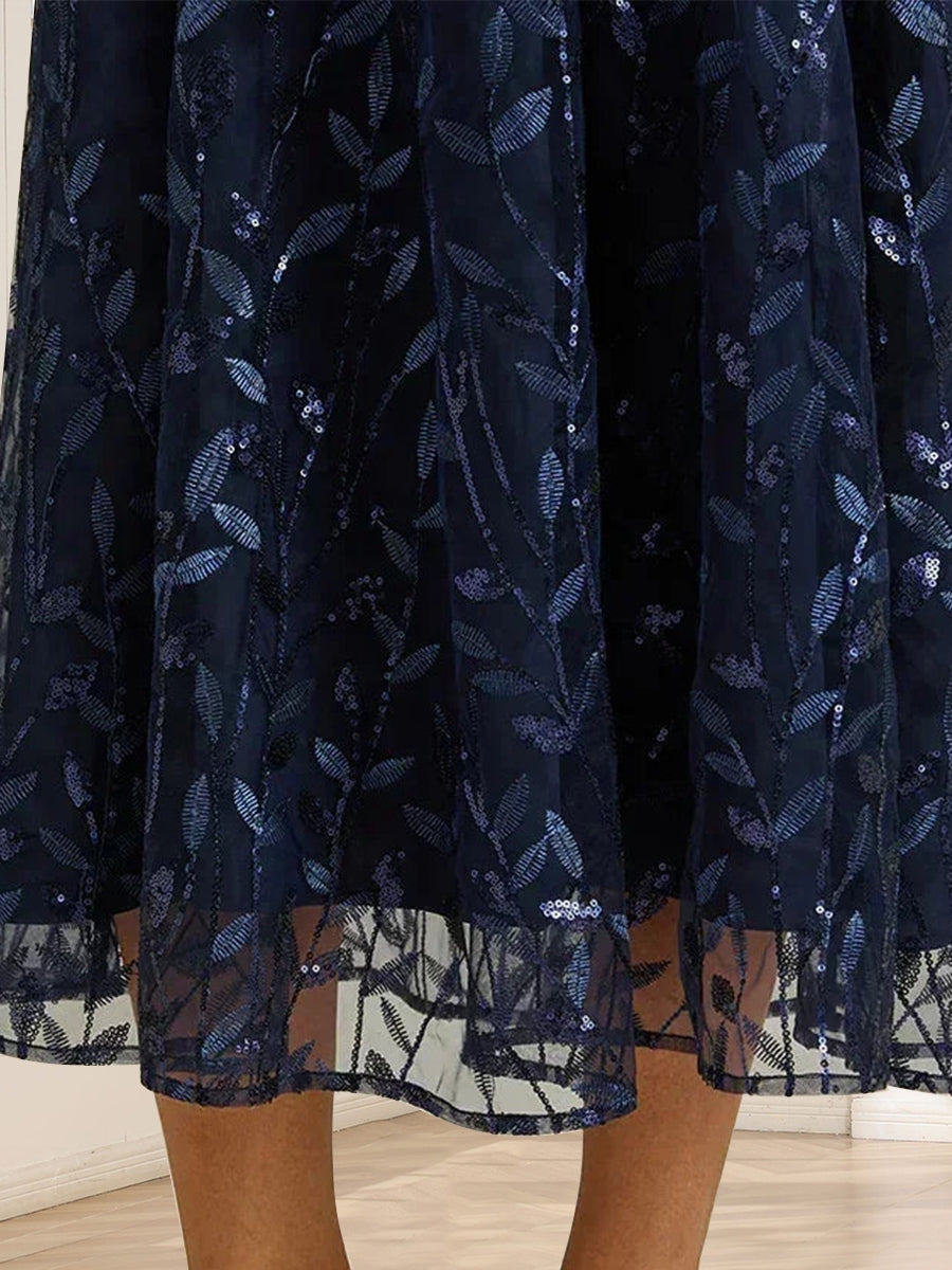 #Toynbee 12011543 A-Line/Princess V-Neck 3/4 Flared Sleeves Tea-Length Mother of the Bride Dresses with Sequins Mesh