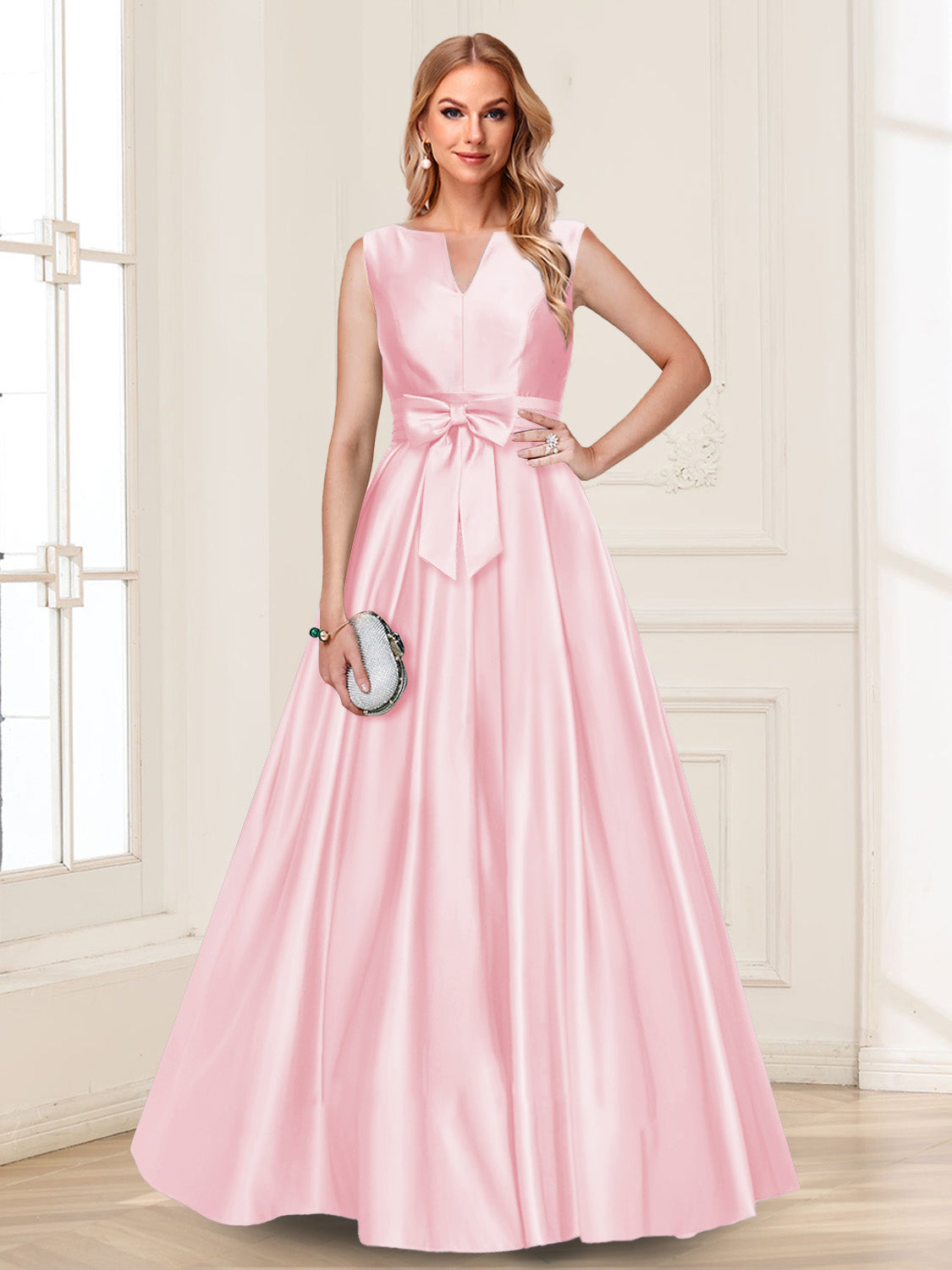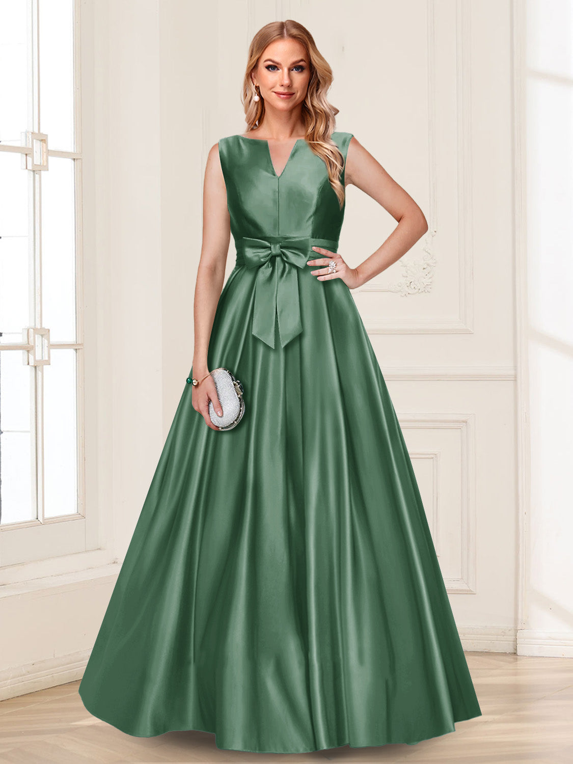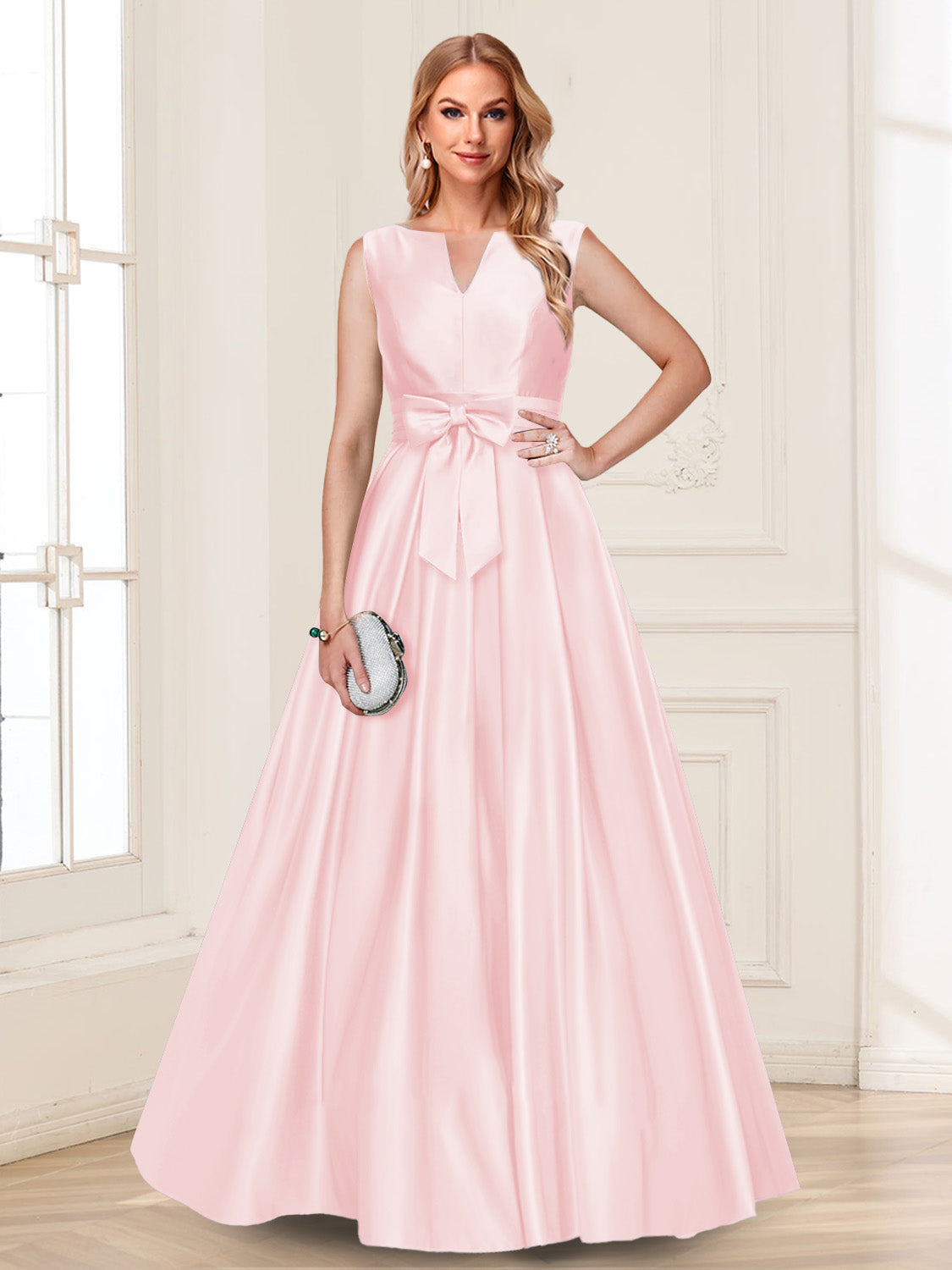 • A-Line/Princess V-Neck Sleeveless Mother of the Bride Dresses with Bow