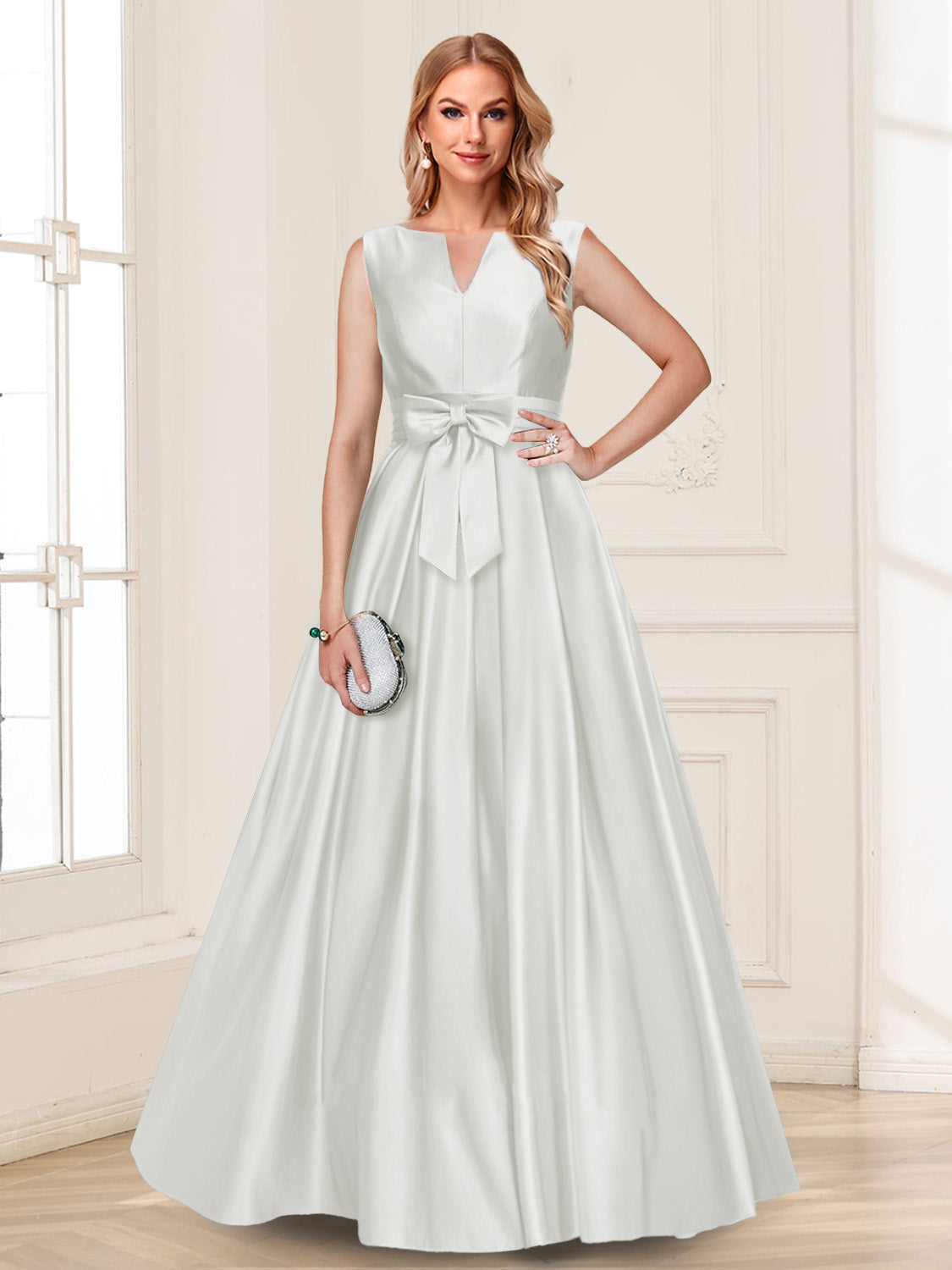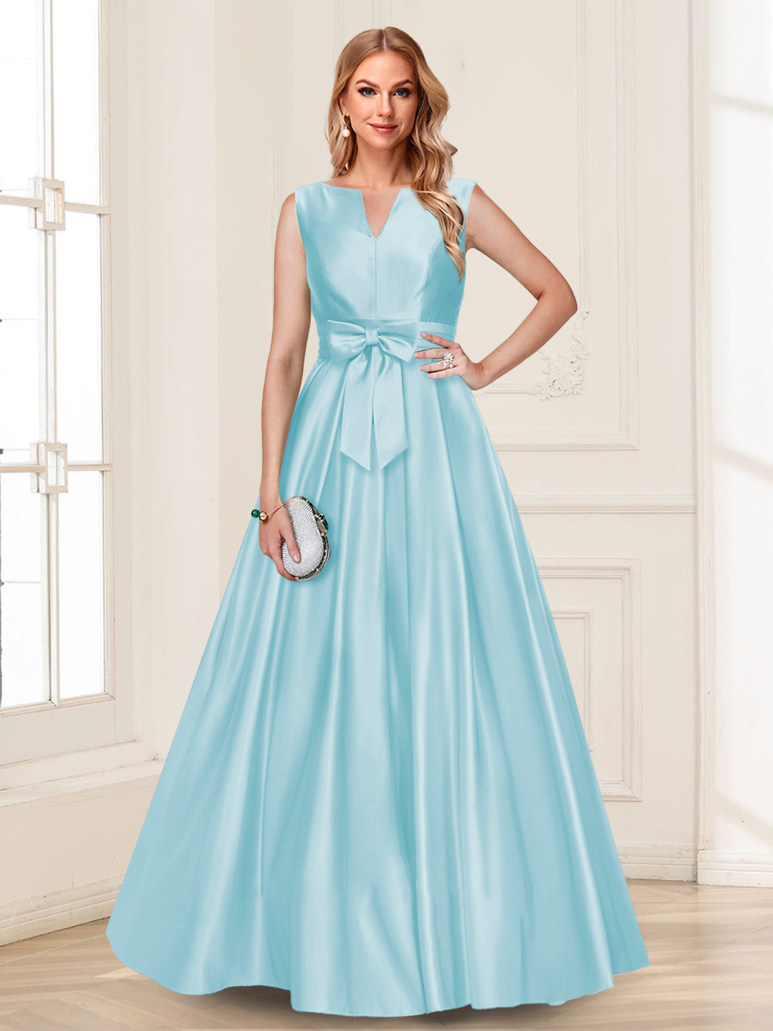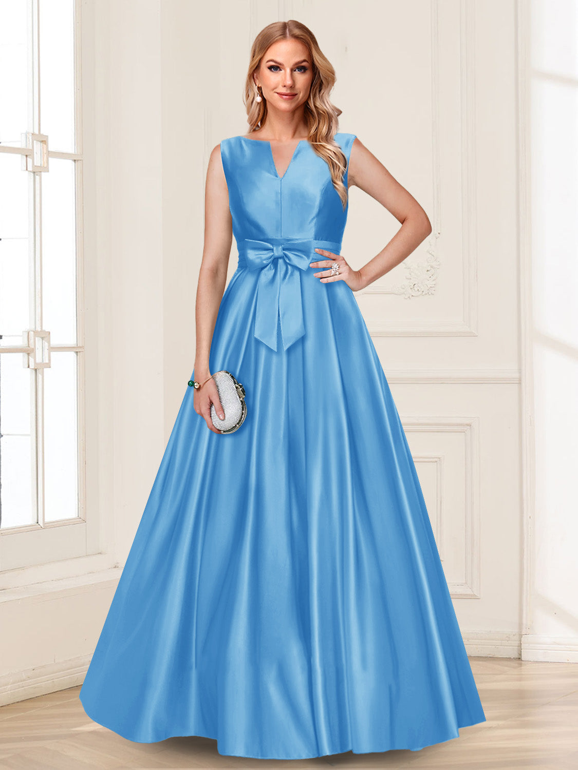 #Luna A12010413 A-Line/Princess V-Neck Sleeveless Mother of the Bride Dresses with Bow