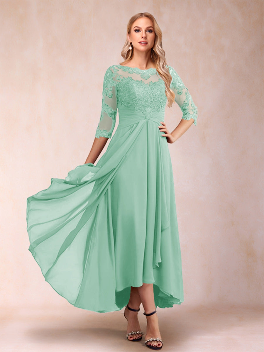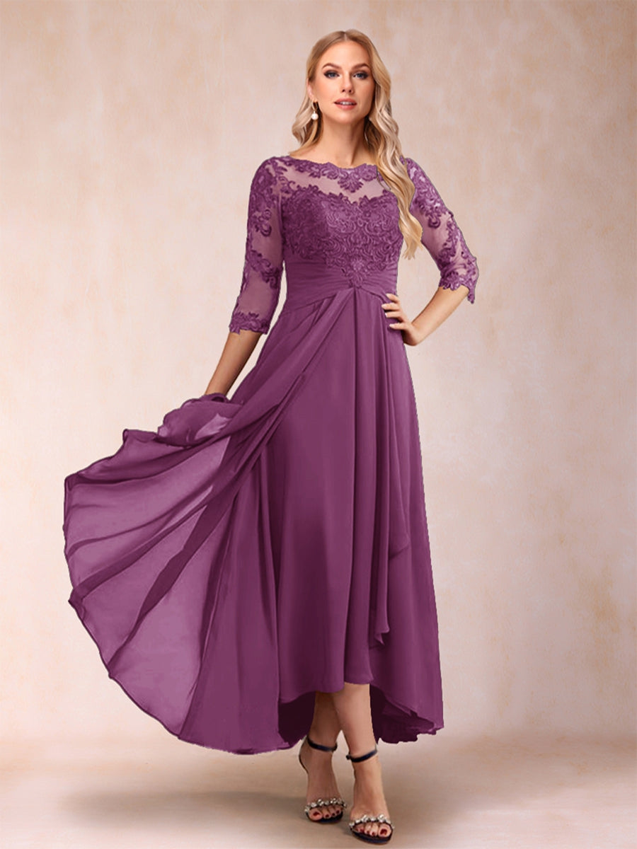 #Poppy 12010042 A-Line/Princess Asymmetrical 3/4 Sleeves Sweetheart Mother of the Bride Dresses