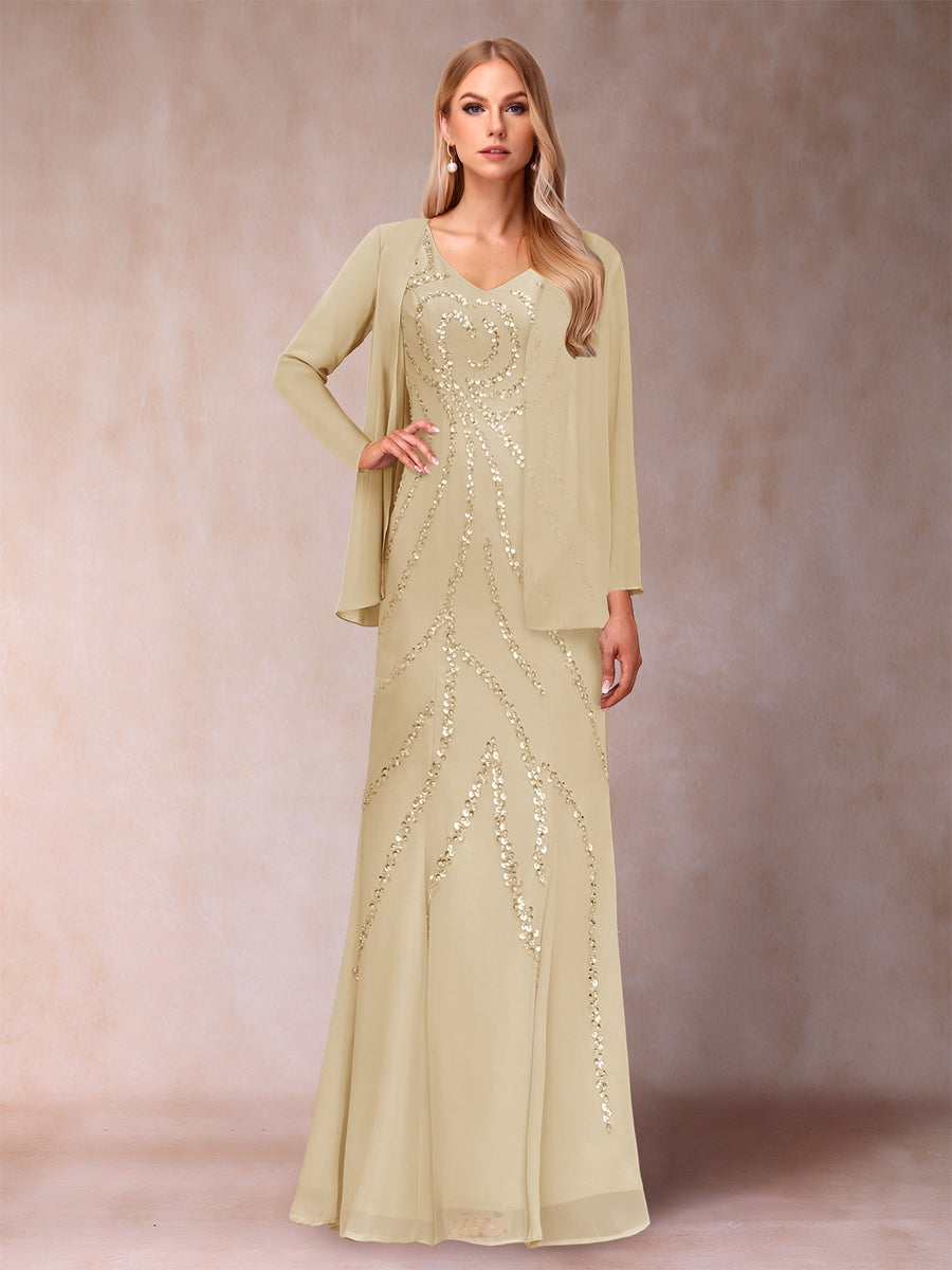 #Bristol B2322395 Sheath/Column V-Neck Floor-Length Mother of the Bride Dresses With Jacket & Sequins