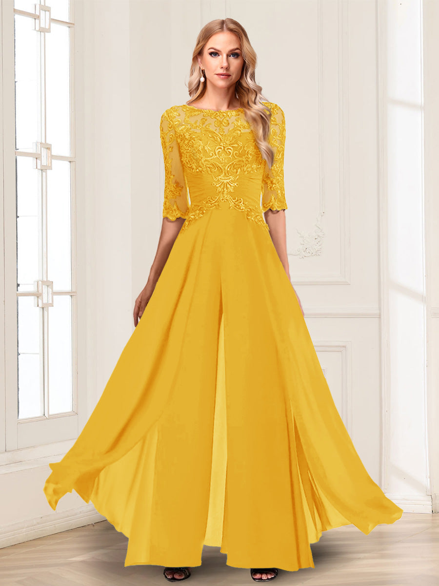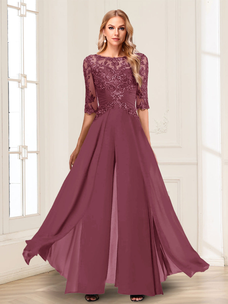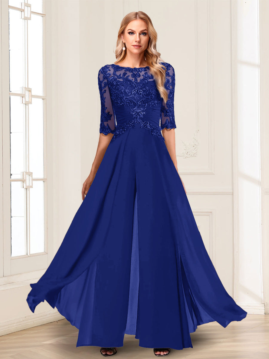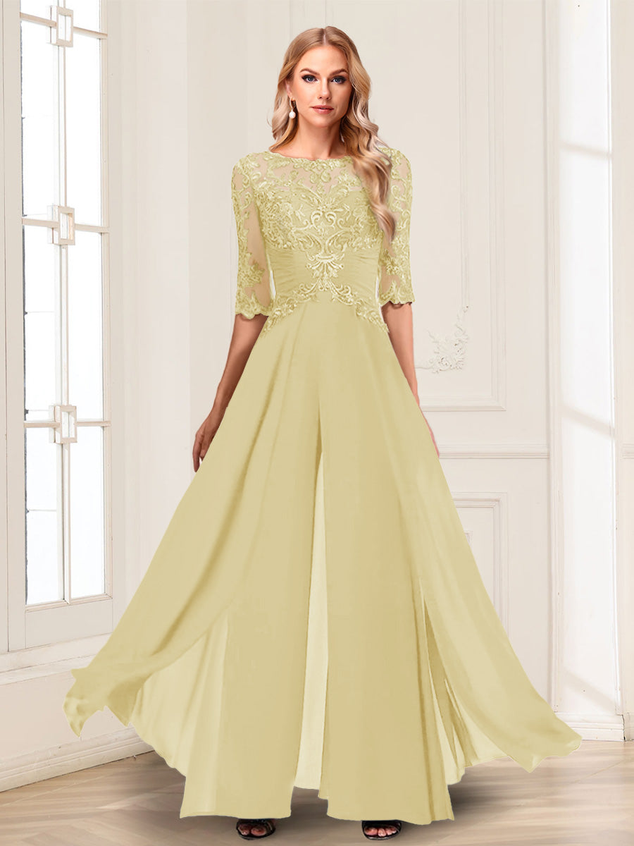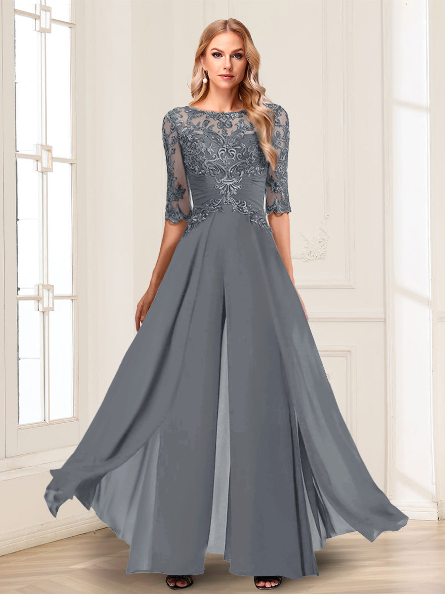 #Eulalia B12010047 Chiffon Floor-Length Half Sleeves Scoop Mother of the Bride Pantsuits