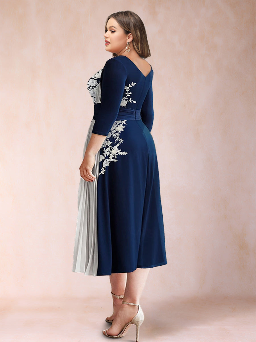 #Balthzr 12010331P A-Line/Princess Scoop 3/4 Sleeves Plus Size Mother of the Bride Dresses with Applique