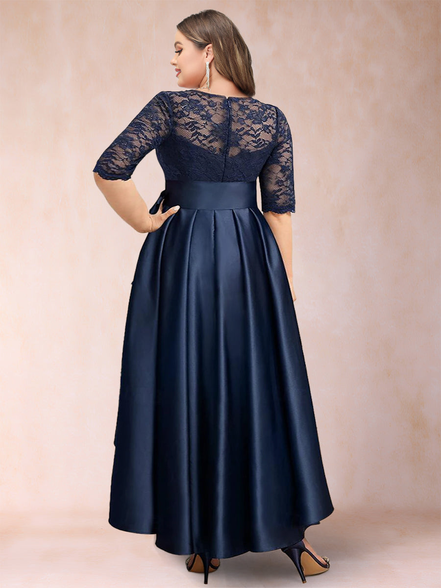 #Lucine 12010297P A-Line/Princess Scoop Half Sleeves Lace Plus Size Mother of the Bride Dresses with Applique