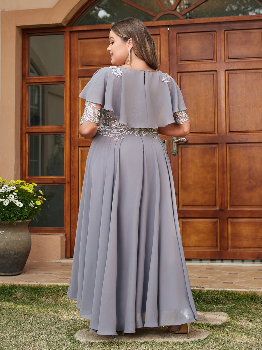 #Xanr 22441660P A-Line/Princess Sheer Neck Half Sleeves Long Plus Size Evening Dresses with Appliques