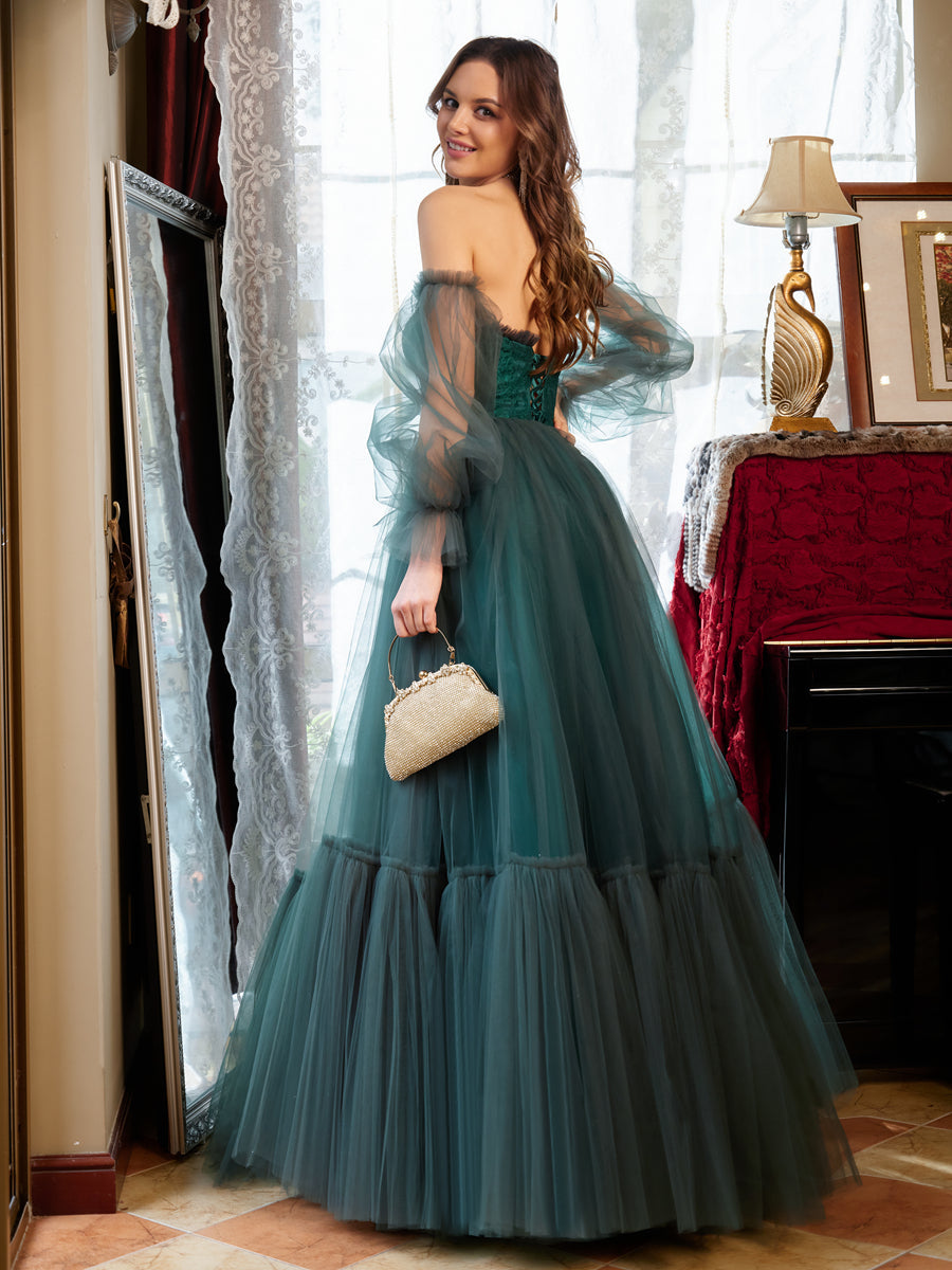 • A-Line/Princess Tulle Sweetheart Long Prom Dresses