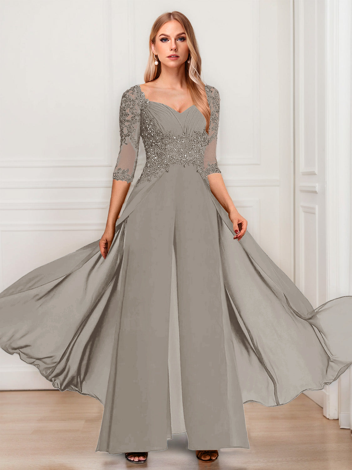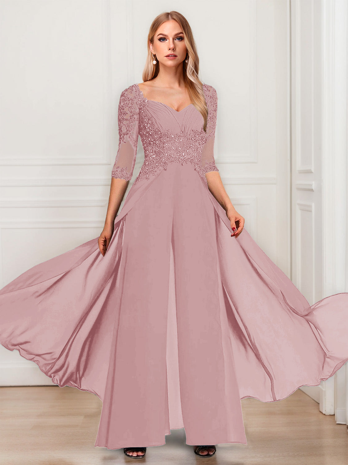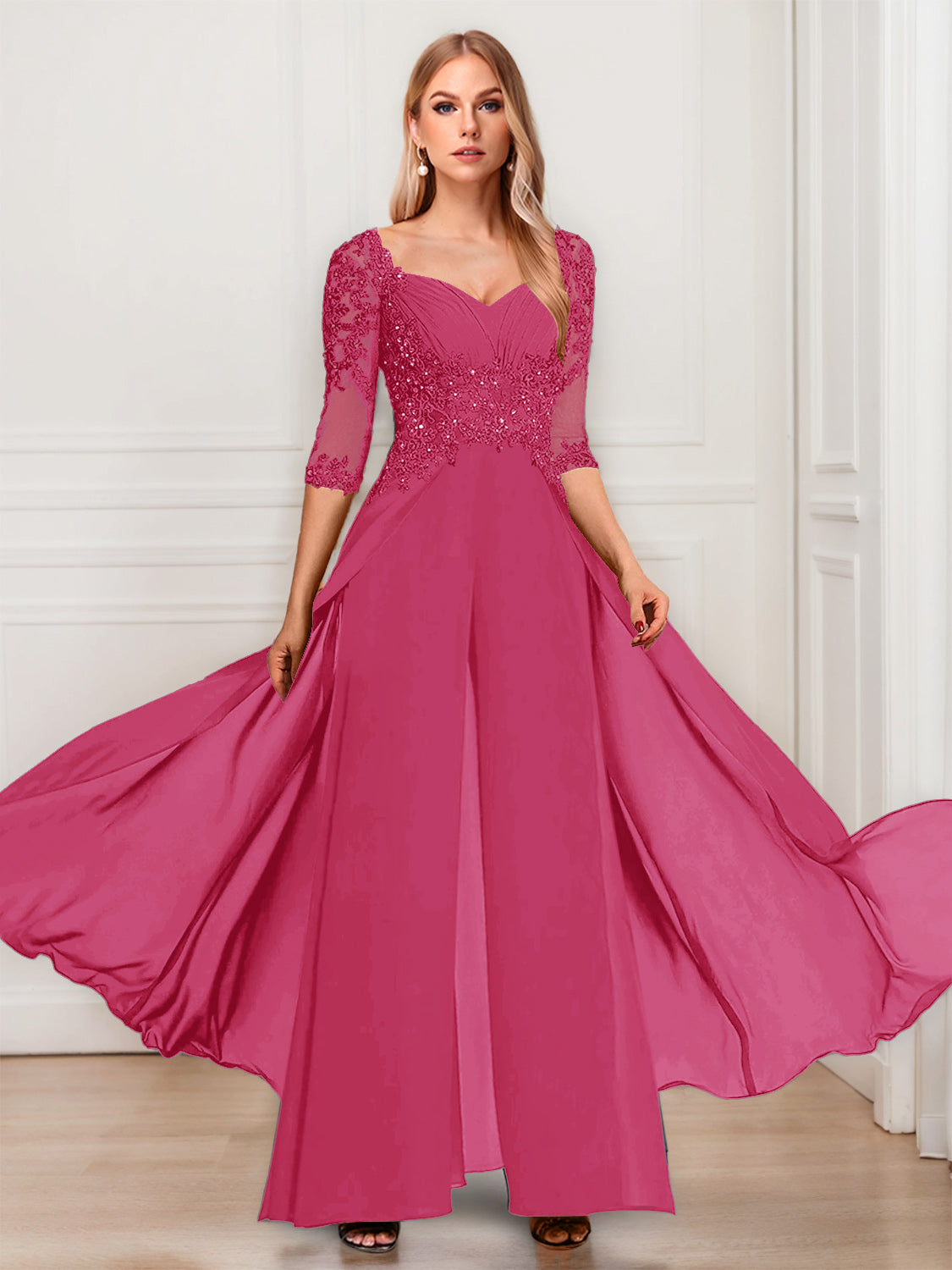 #Aurelius A12010388 Chiffon V-Neck Half Sleeves Mother of the Bride Pantsuits with Applique