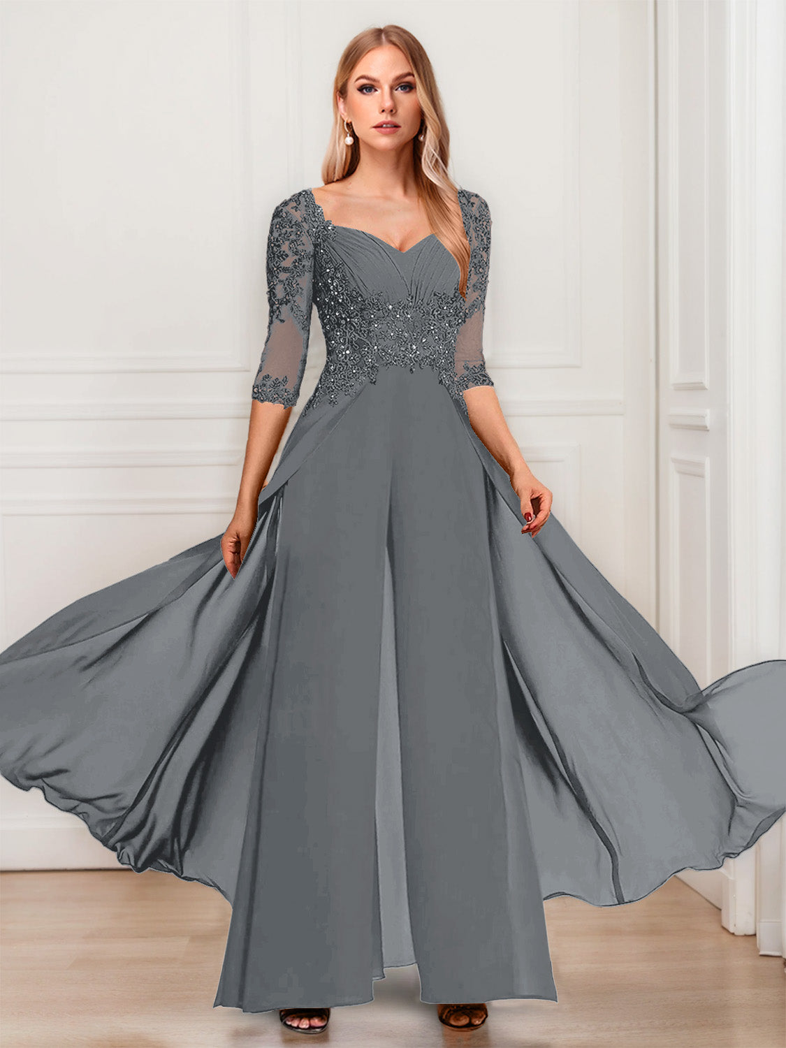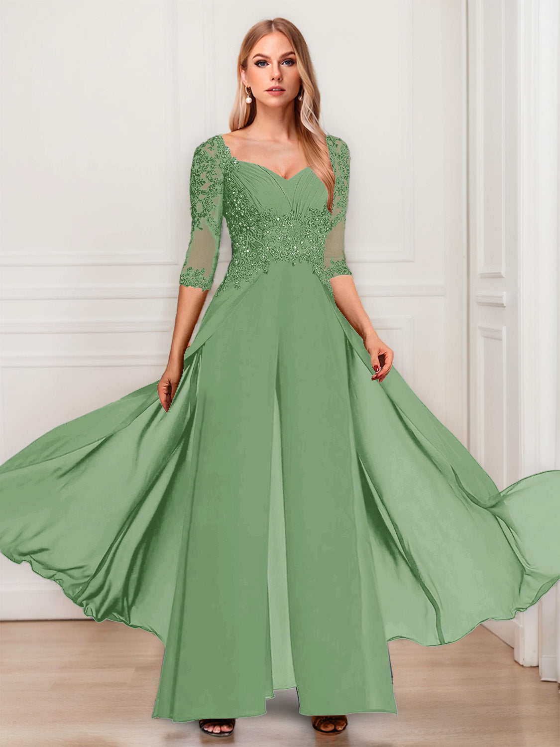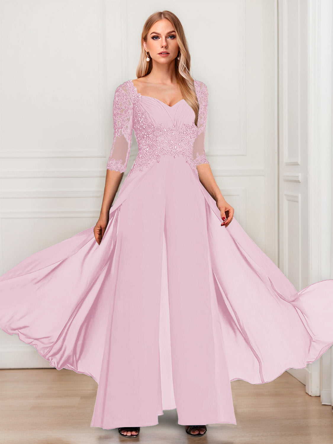 #Aurelius A12010388 Chiffon V-Neck Half Sleeves Mother of the Bride Pantsuits with Applique
