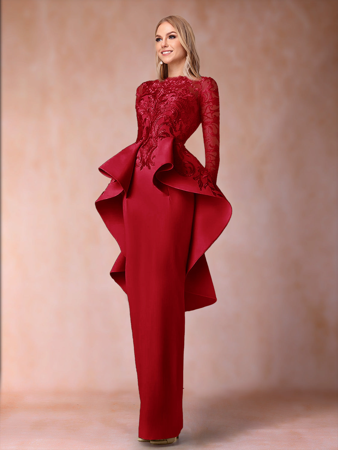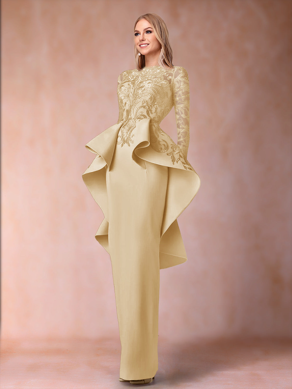 #Joni 12010411 Sheath/Column Scoop Long Sleeves Mother of the Bride Dresses with Applique