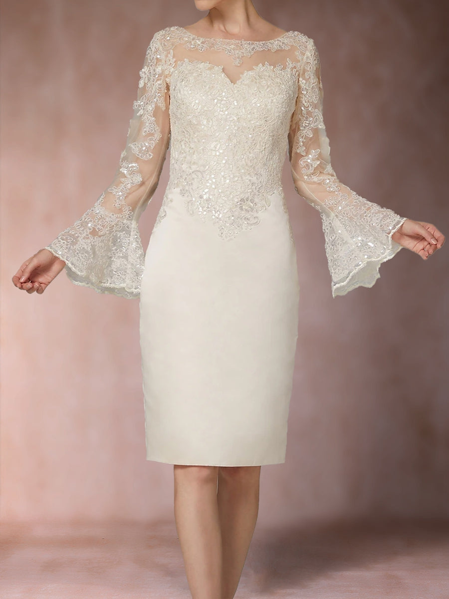 #Cora 12010418 Sheath/Column Scoop Long Sleeves Mother of the Bride Dresses with Applique