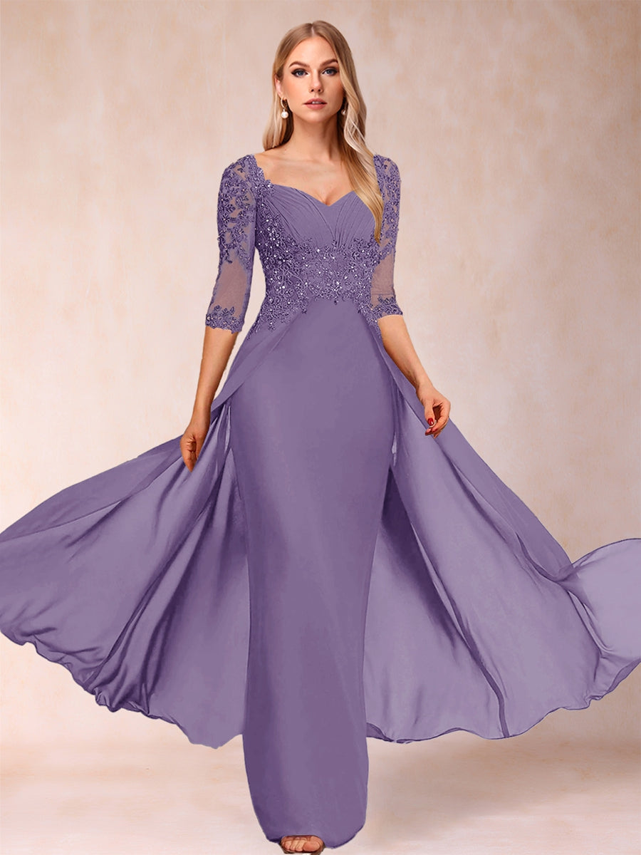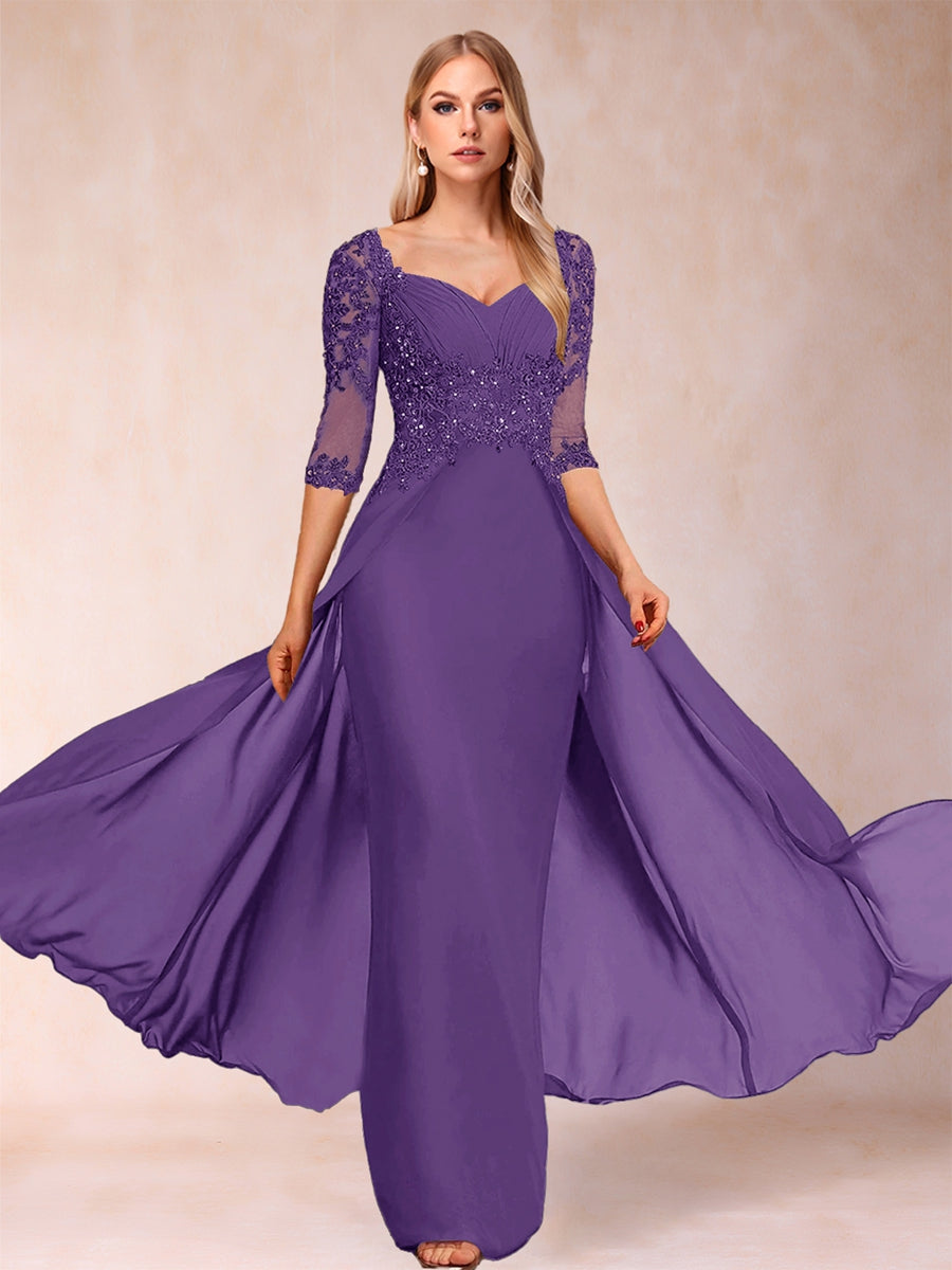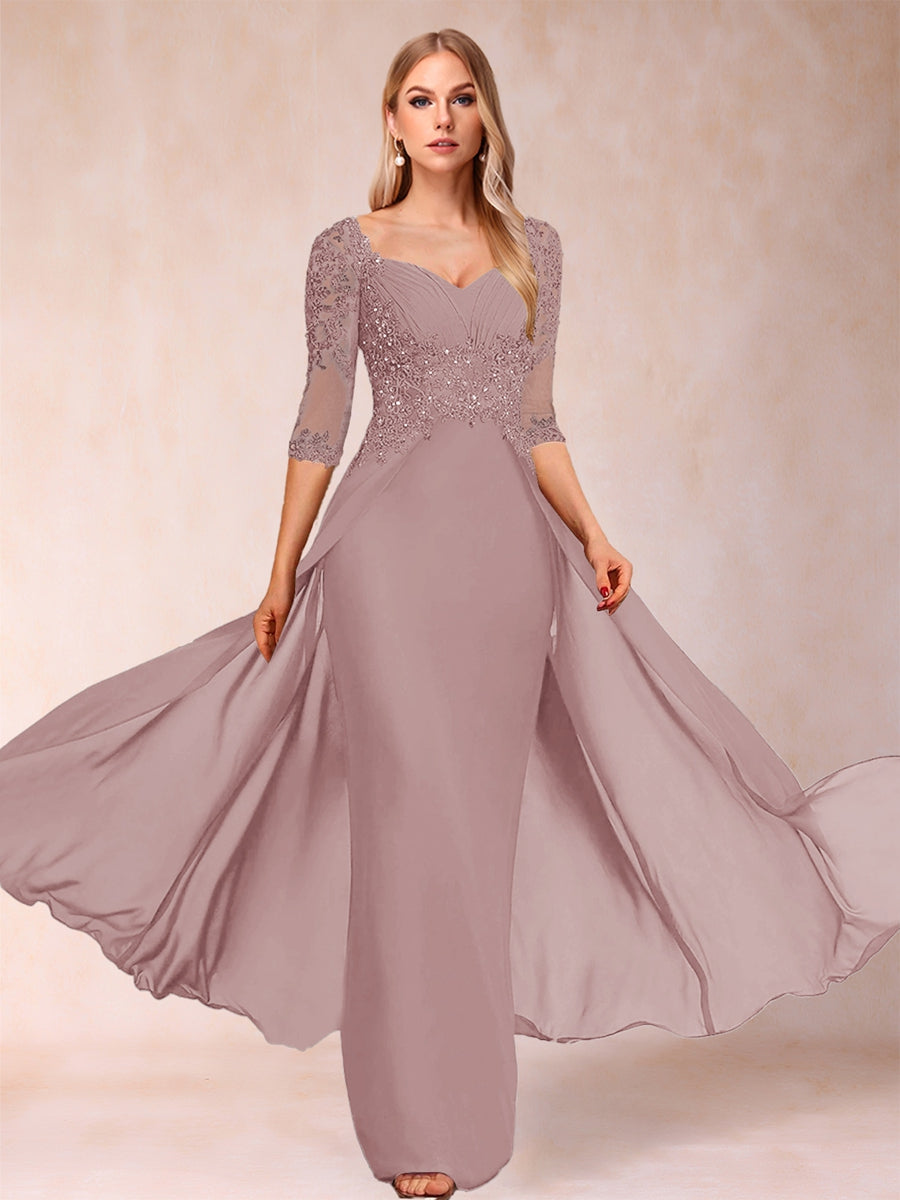 #Riza 12010388 Sheath/Column V-Neck Half Sleeves Mother of the Bride Dresses with Applique