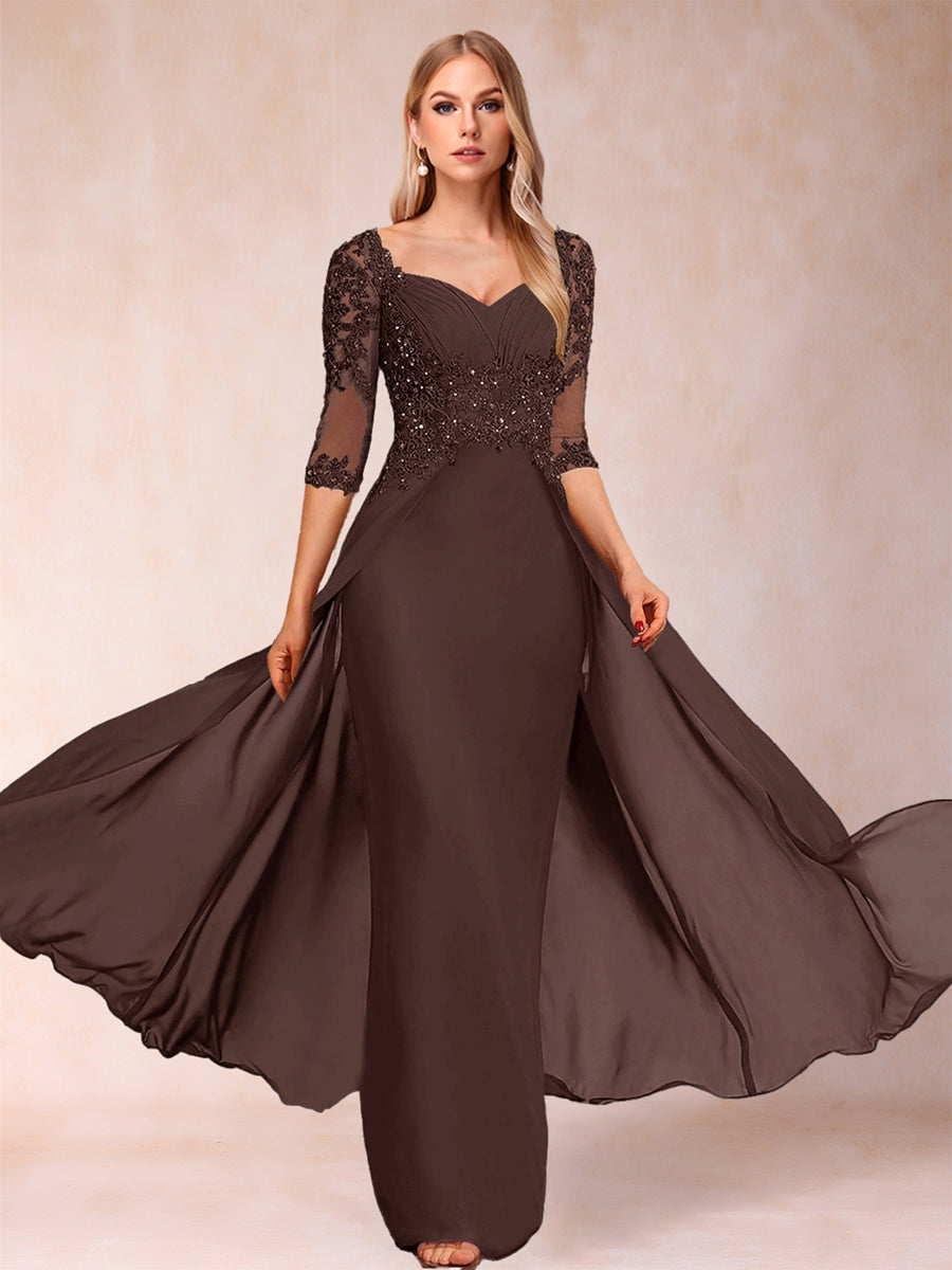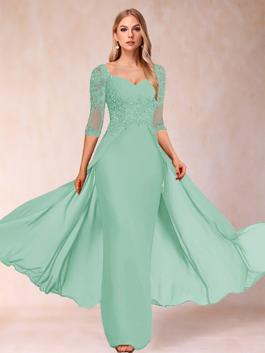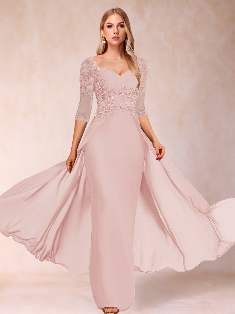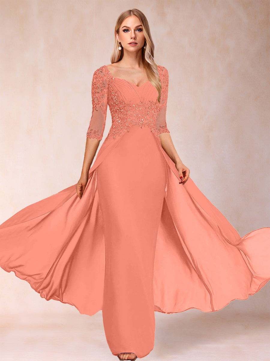 #Riza 12010388 Sheath/Column V-Neck Half Sleeves Mother of the Bride Dresses with Applique