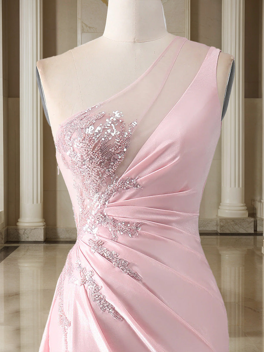 #Lacey 12010123 Trumpet/Mermaid One-Shoulder Sweep Train/Brush Train Evening Dresses with Side Slit & Appliques