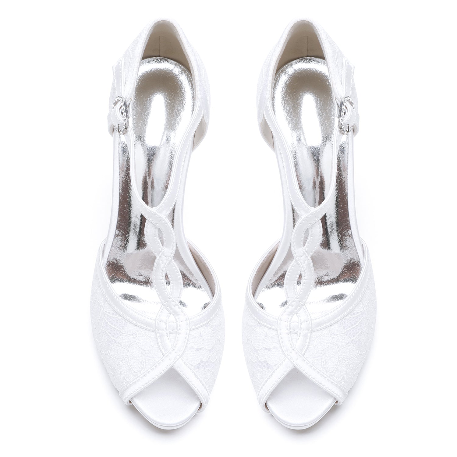 #SH718X9LS Women's Lace With Ankle Strap Lace Peep Toe Stiletto Heel Evening Shoes