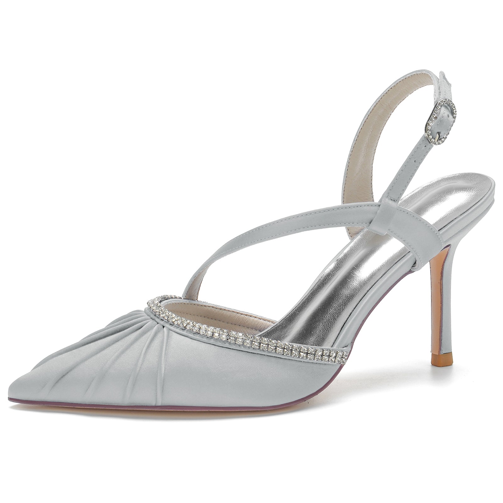 #SH1963X22 Women's nkle Strap Silk Satin Rhinestone Closed Toe Stiletto Heel Evening Shoes