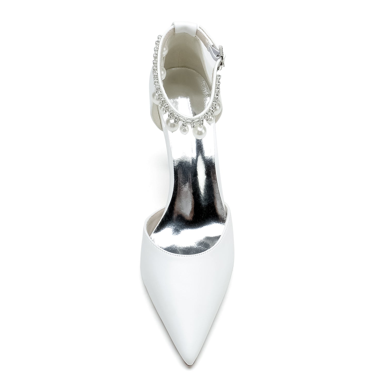 • Women's PU With Ankle Strap Pearl Tassel Closed Toe Stiletto Heel Wedding Shoes