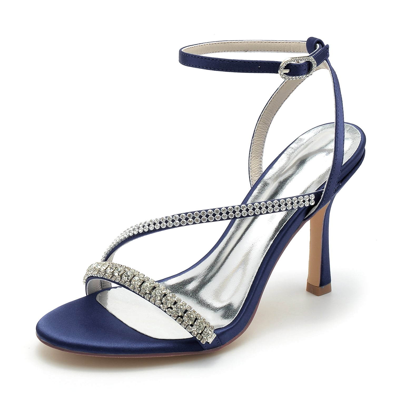 #SH3999X9 Women's Silk Satin Ankle Strap With Rhinestone Peep Toe Stiletto Heel Evening Shoes