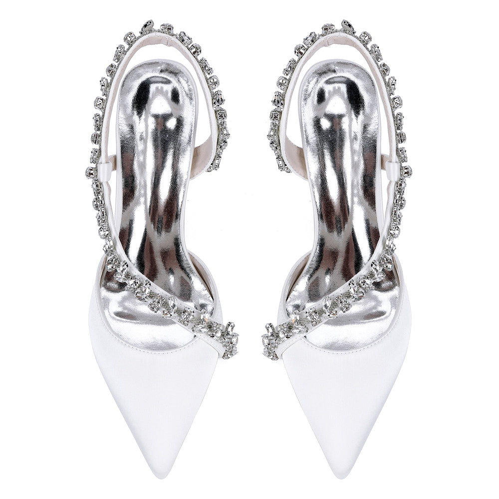 #SH1963X31B Women's Silk Satin Rhinestone Closed Toe With Rhinestone Stiletto Heel Evening Shoes