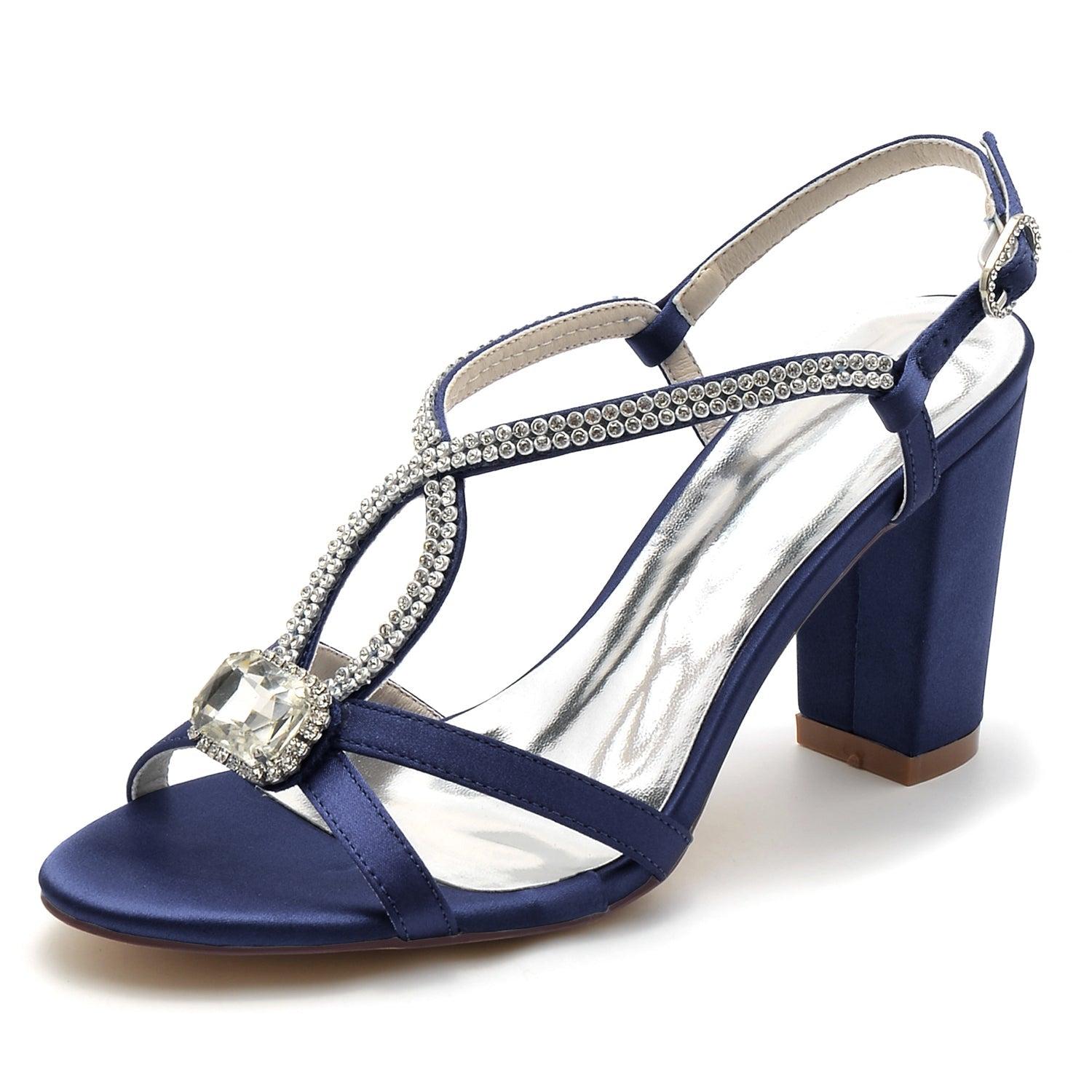 #SH2022X8 Women's Silk Satin Rhinestone With Ankle Strap Peep Toe Chunky Heel Party Shoes