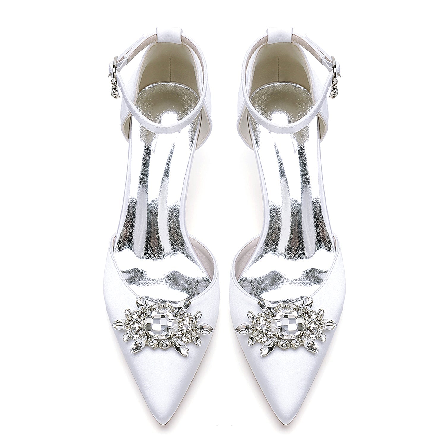 #SH22014X15TY Women's Silk Satin With Ankle Strap Chunky Heel Rhinestone Closed Toe Evening Shoes