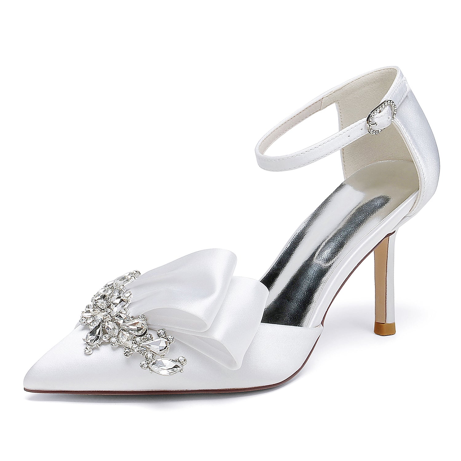 #SH1963X107 Women's Silk Satin With Ankle Strap Closed Toe Stiletto Heel Evening Shoes