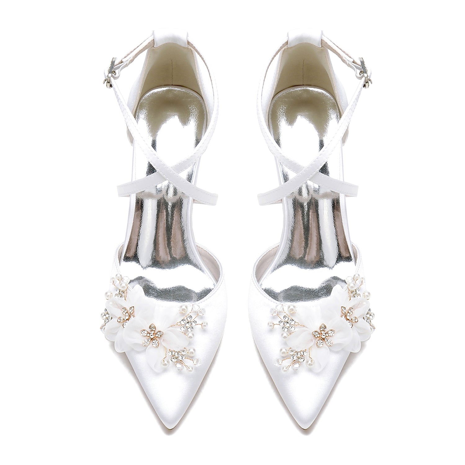 #SH22014X59S Women's Silk Satin With Ankle Strap Flower Closed Toe Chunky Heel Wedding Shoes