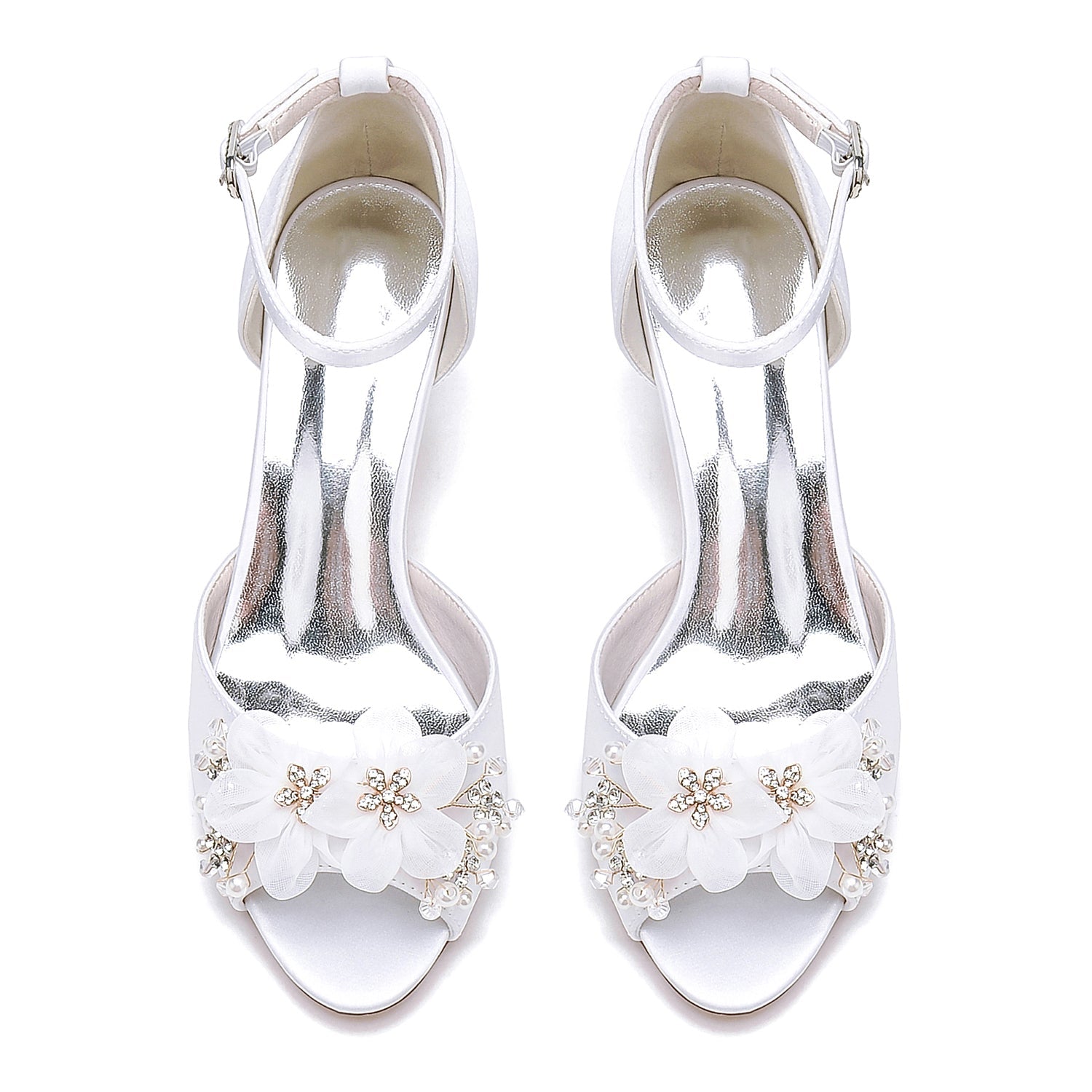 #SH36861X1S Women's Silk Satin With Ankle Strap Flower Peep Toe Stiletto Heel Wedding Shoes