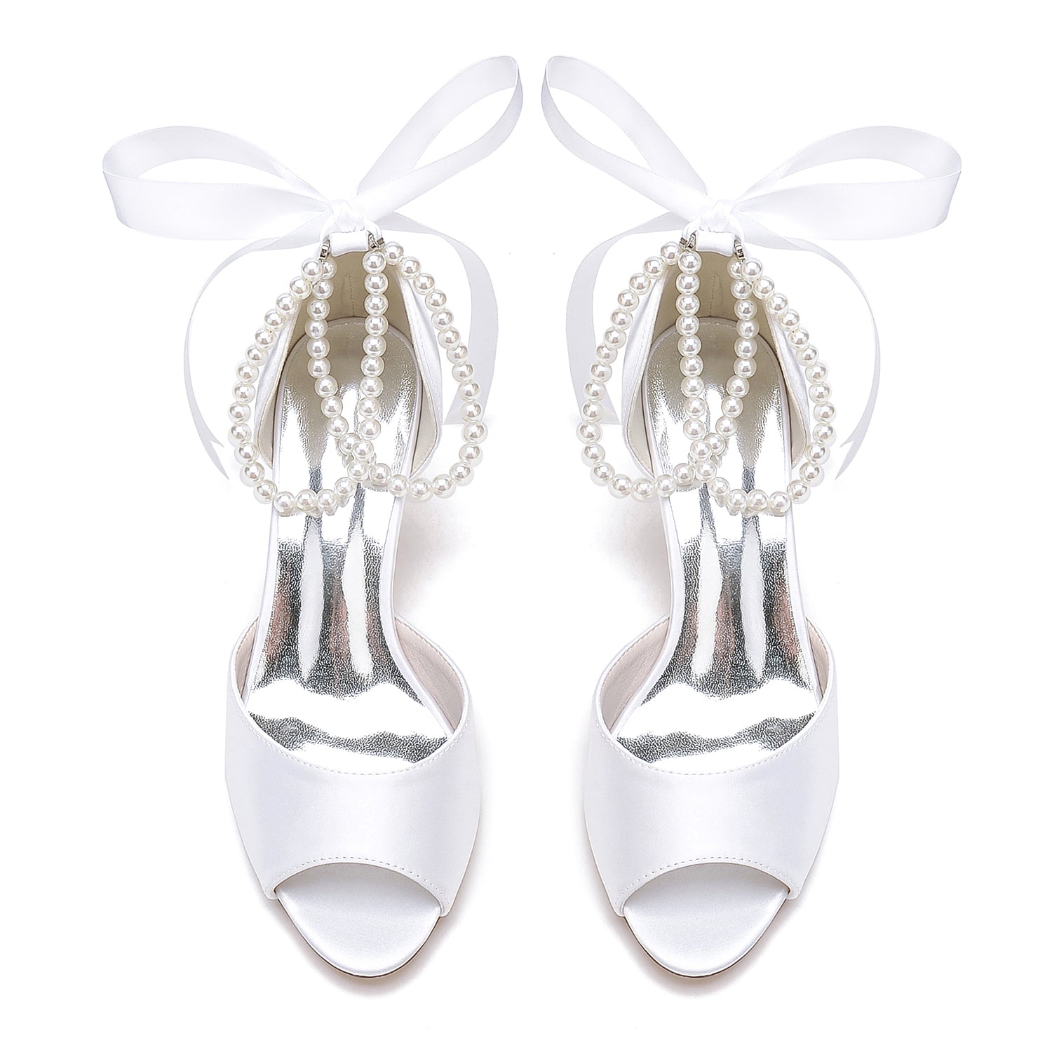 #SH36861X1SS Women's Silk Satin With Ankle Strap Lace-up Pearl Peep Toe Spool Heel Party Shoes