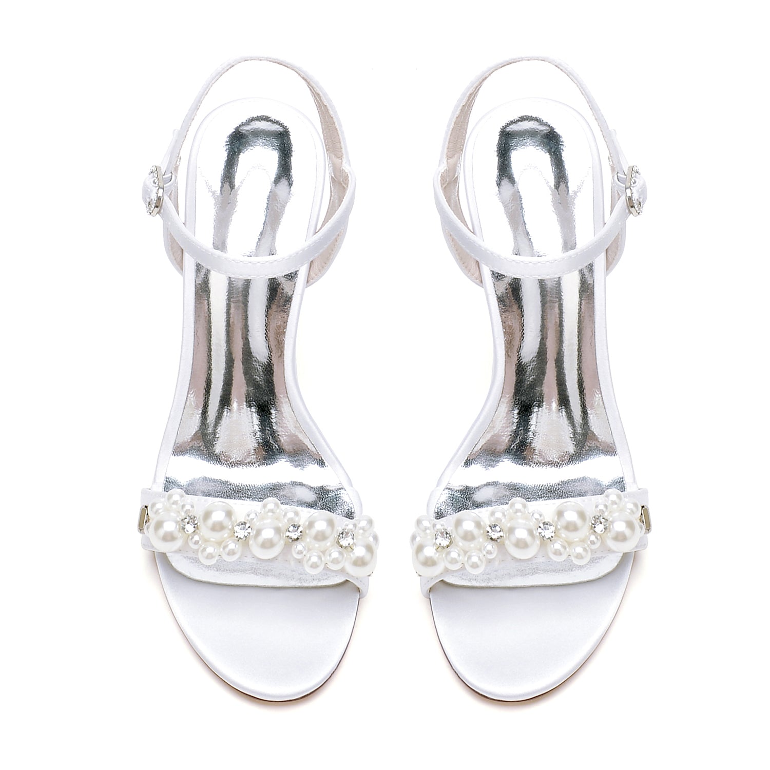 #SH3999X16R Women's Silk Satin With Ankle Strap Pearl Peep Toe Stiletto Heel Wedding Shoes